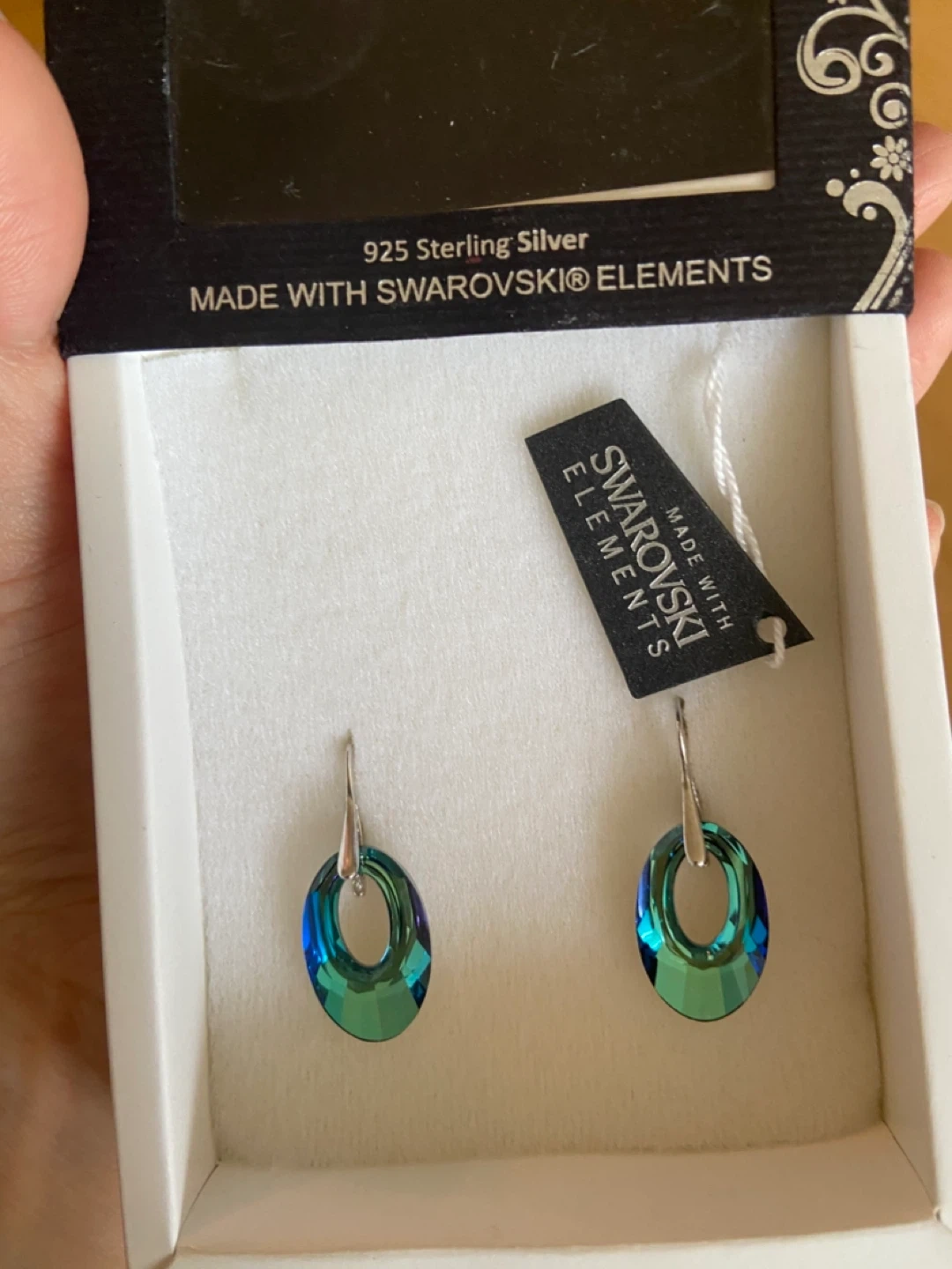 These are a beautiful pair of Swarovski crystal earrings by Marea Crystal. They are made with 925 Sterling Silver and Swarovski elements. The earrings are brand new and come in their original box!