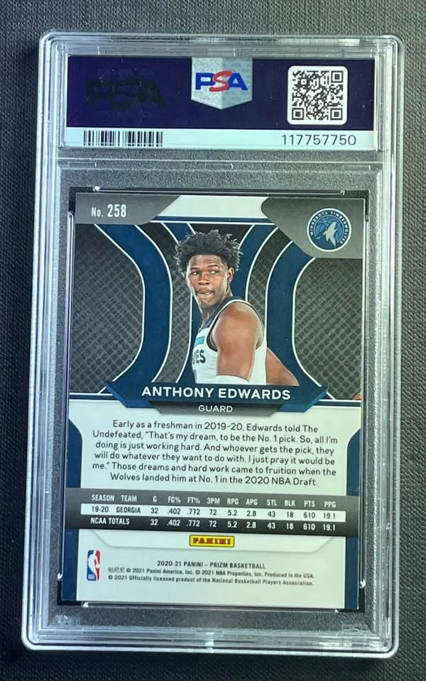 Buy & Sell2020-21 Panini Prizm Anthony Edwards RC PSA 102020-21 Panini Prizm Anthony Edwards RC PSA 10$1402020 Panini Prizm Anthony Edwards Rookie RC Base Minnesota Timberwolves card, graded PSA 10 Gem MT $140 OBOWHERE TO MEETCheck LocationView MapSELLERverifiedMarcus LCorso Italia17210 reviews0 chats·0 favorites·5 viewsSEND CHAT TO SELLERHi Marcus L! I’m interested in your listing.Hi Marcus L! I’m interested in your listing.Get the Karrot app to chatSign In to chat