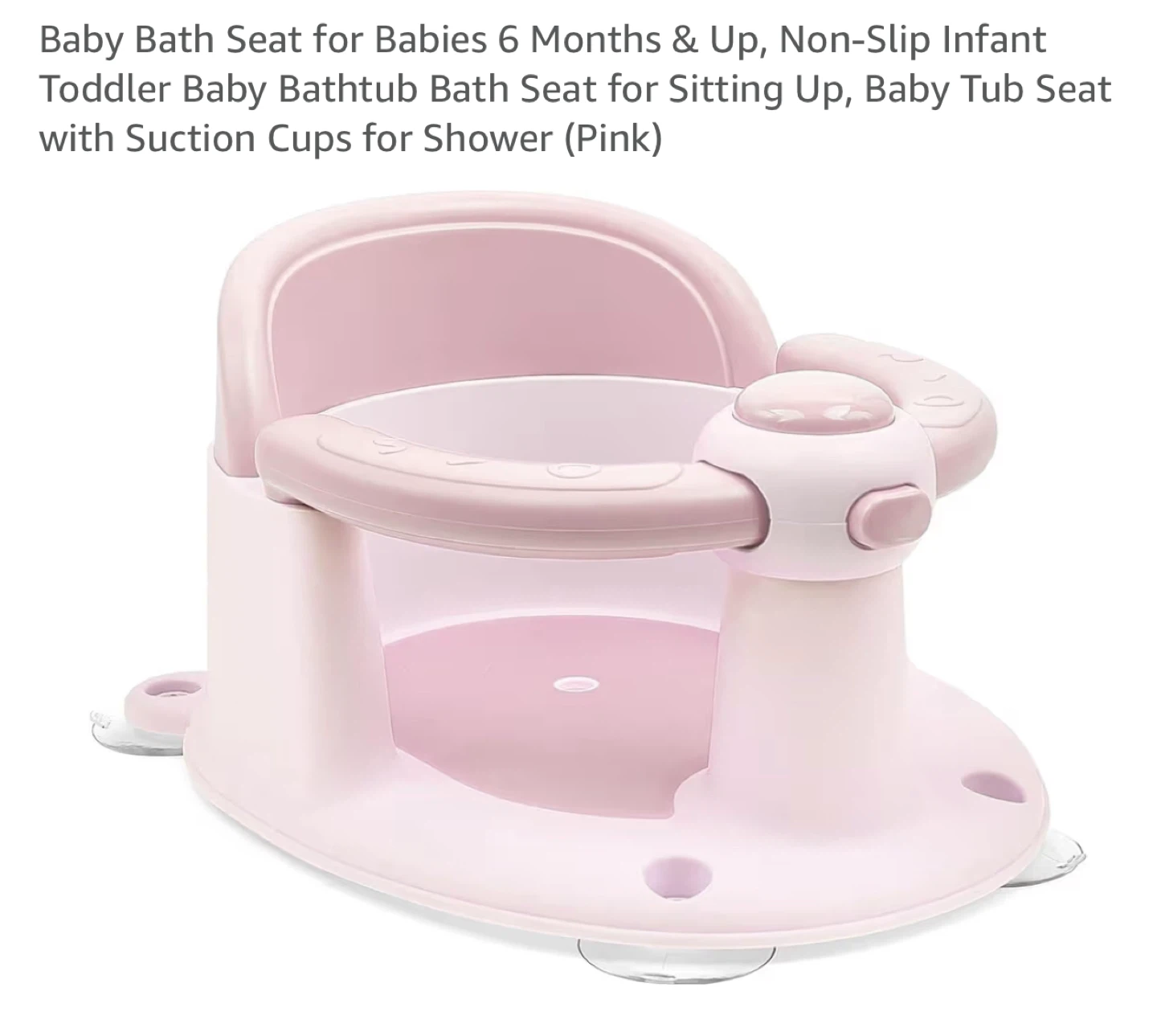 This baby bath chair is perfect for babies 6 months and up! It's a non-slip infant toddler bathtub seat that allows your baby to sit up safely during bath time. It also has suction cups for shower use to keep it secure