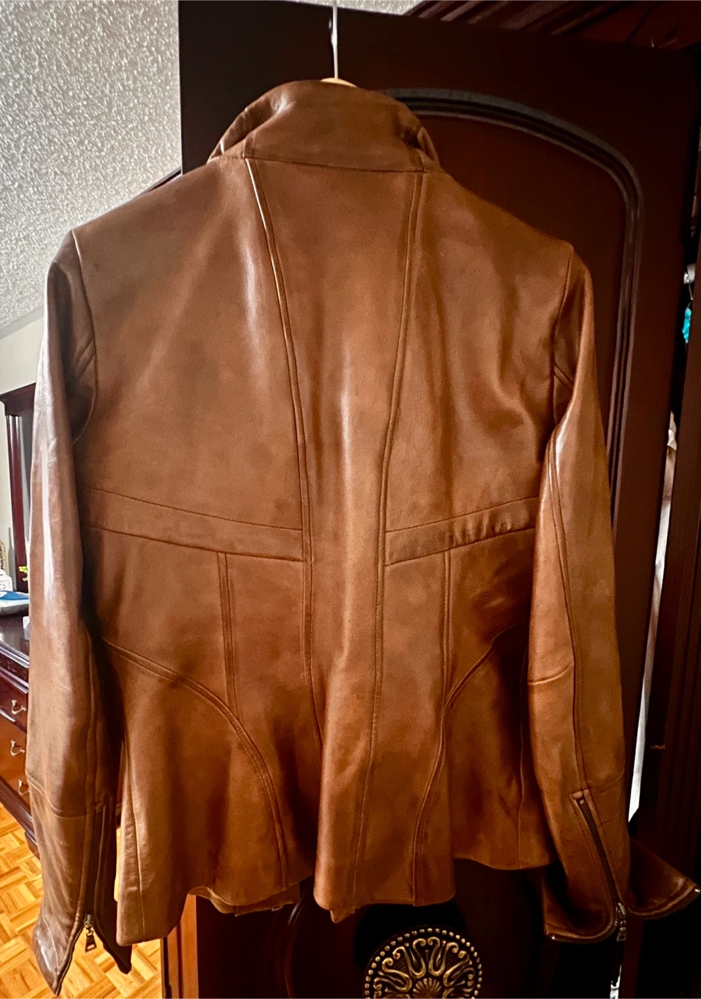 Selling a Danier brown leather jacket in size S/P. It's in great condition and has a stylish design. Perfect for adding a touch of sophistication to your wardrobe!