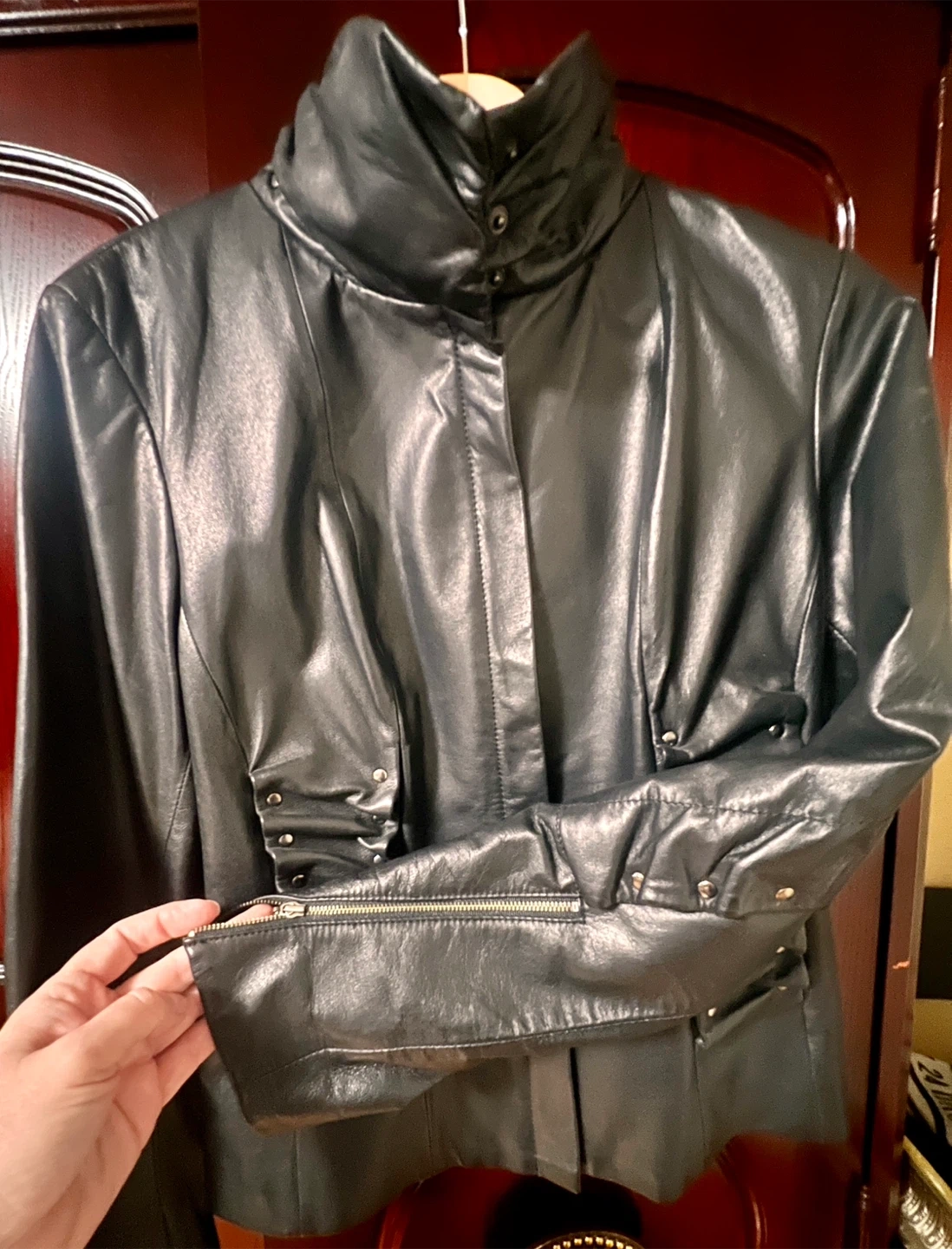 Selling a stylish black Danier leather jacket. It's in great condition and perfect for adding a touch of edge to any outfit. The jacket features a unique collar and detailed accents. It's a great addition to any wardrobe!