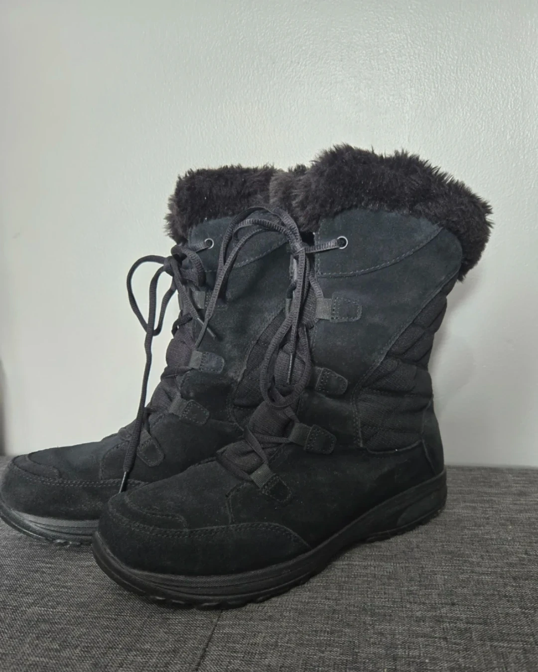 They're perfect for keeping your feet warm and dry during the cold Canadian winters. These boots are black and feature a waterproof design. They are in great condition and ready for a new owner!