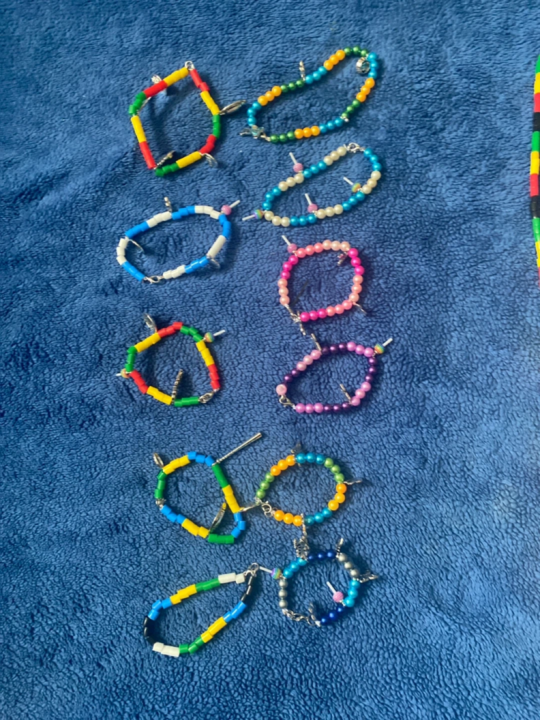 I'm selling a collection of handmade beaded bracelets and necklaces! They come in a variety of colours and styles. Flag Colours available on special order. Perfect for adding a pop of colour to any outfit! They make the perfect stocking Stuffers or party favours. Individually packaged