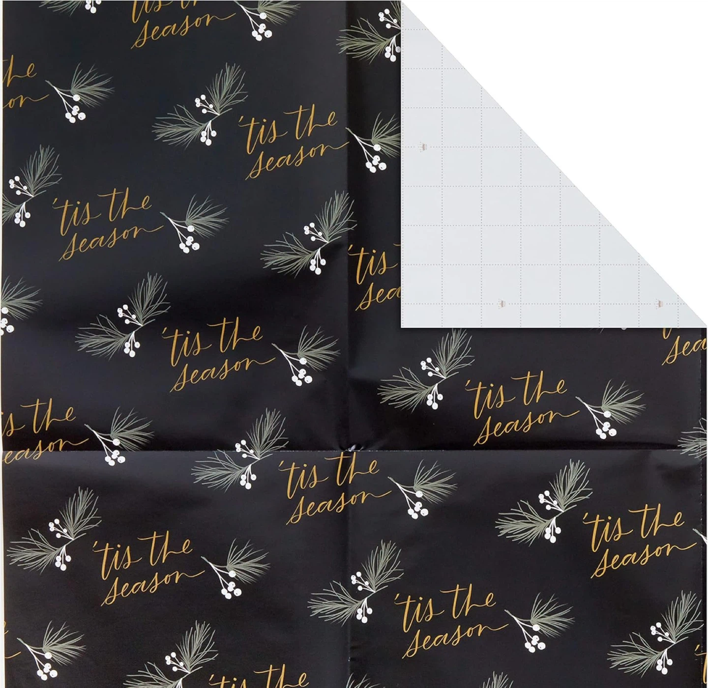 NATURE DESIGNS: Designs include snowflakes on gold, snowmen on sage green and "'Tis the Season" lettering with evergreen sprigs on black; Each sheet features grid lines on the reverse side for straight cutting and perfectly wrapped presents