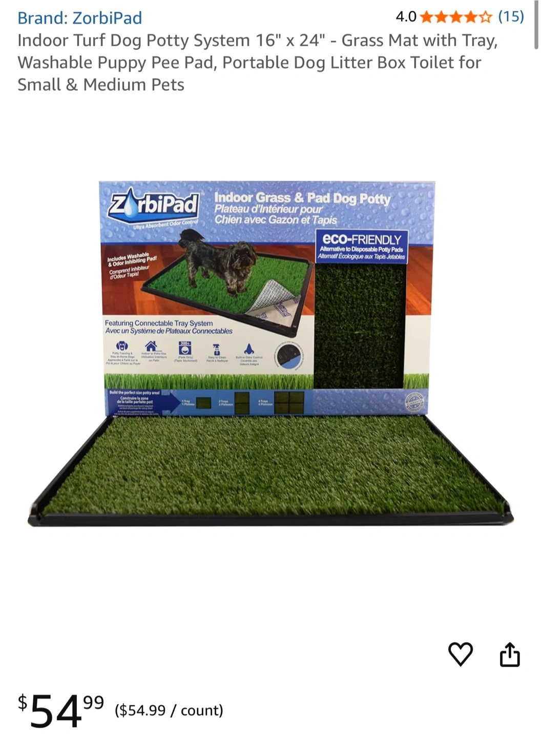 Selling a ZorbiPad Indoor Turf Dog Potty System.