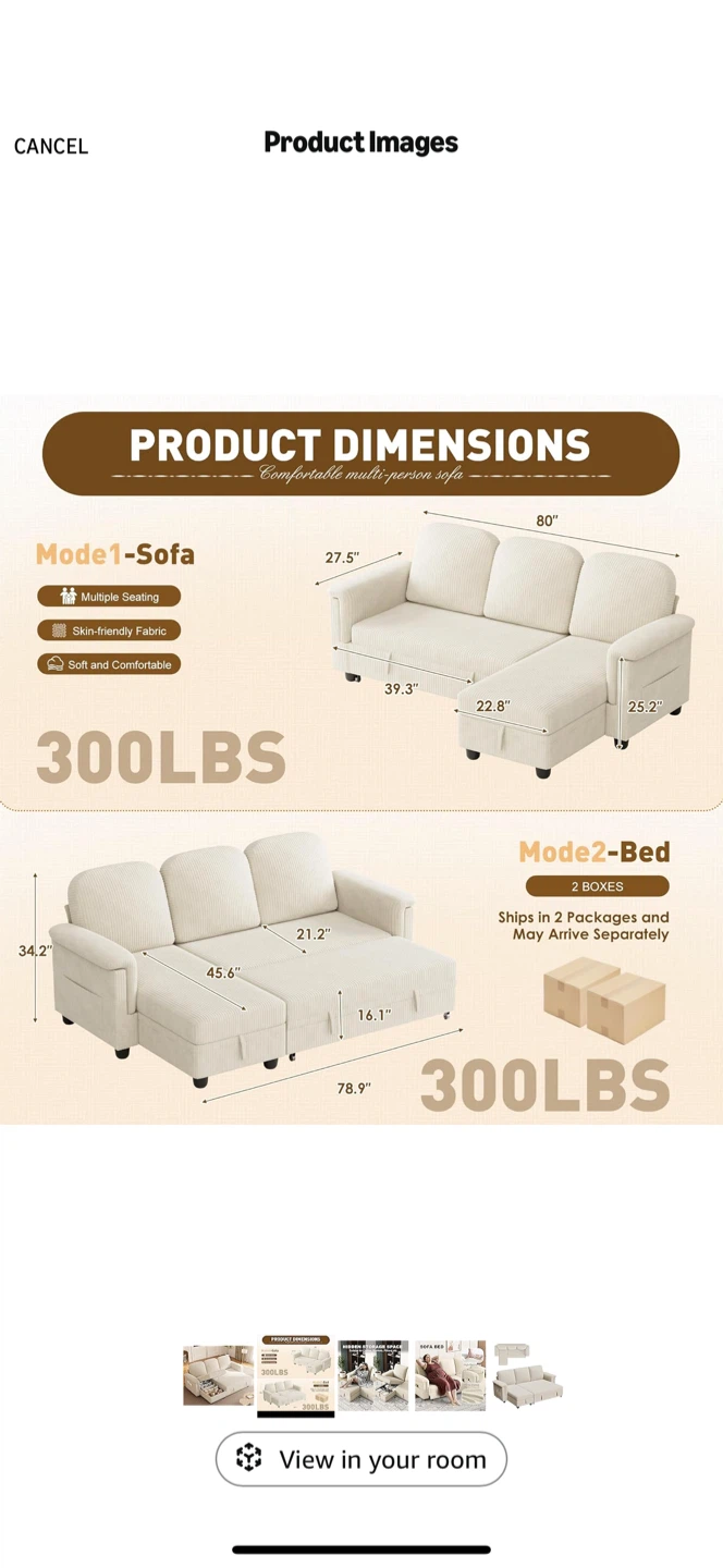 - DimensionsSofa mode W80βΓD39.3βΓH34.2β Bed mode W78.9βΓD45.6