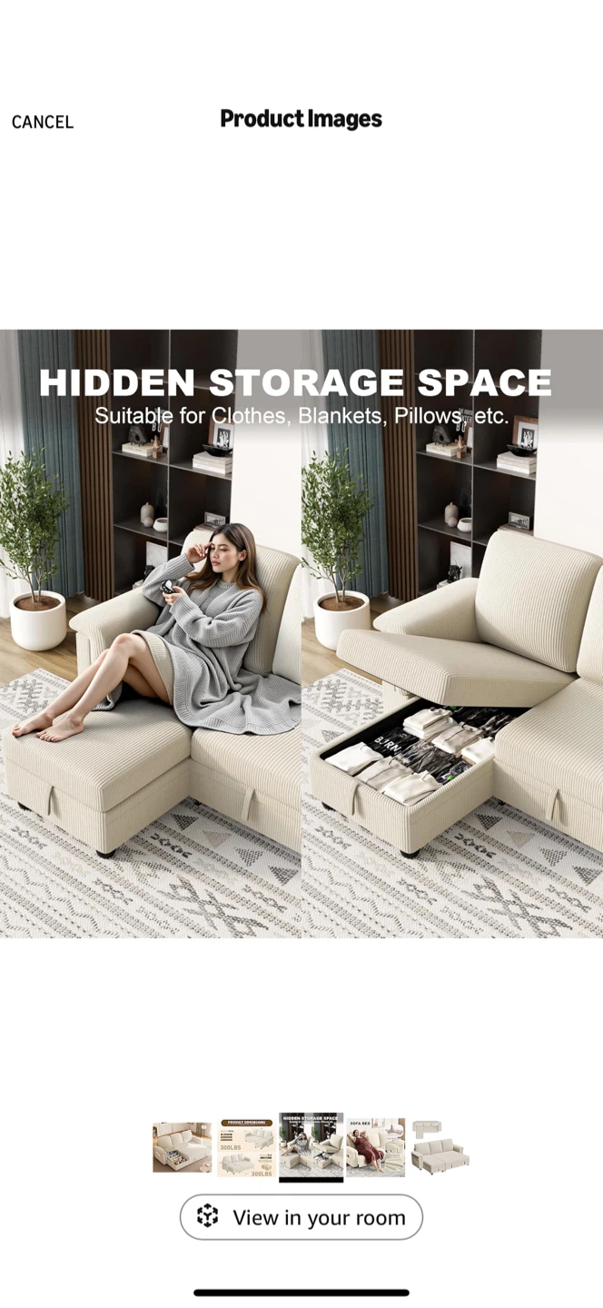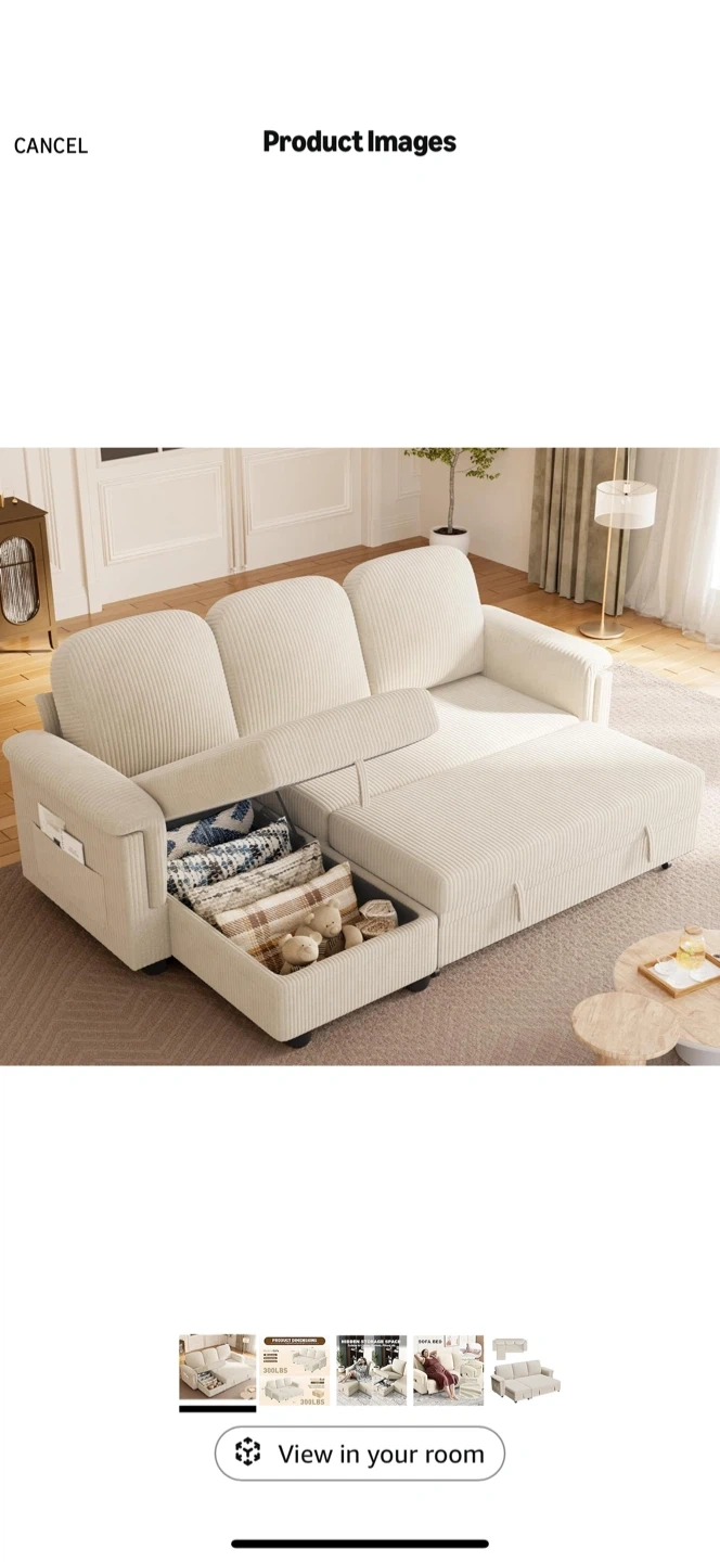 Convertible Sofa Bed with Storage β Excellent Condition!