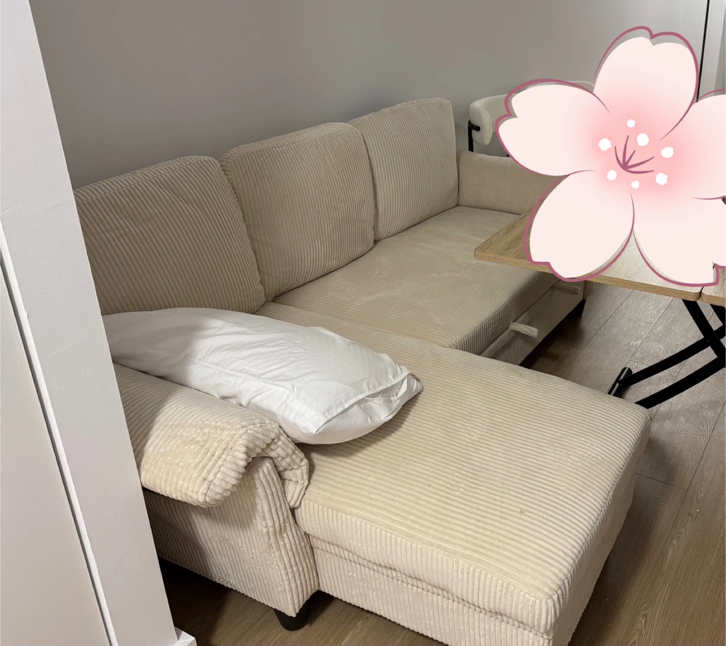 *Since it is heavy to move it to front of apartment room, would appreciate to be sure you would like to buy the sofa. Thanks!