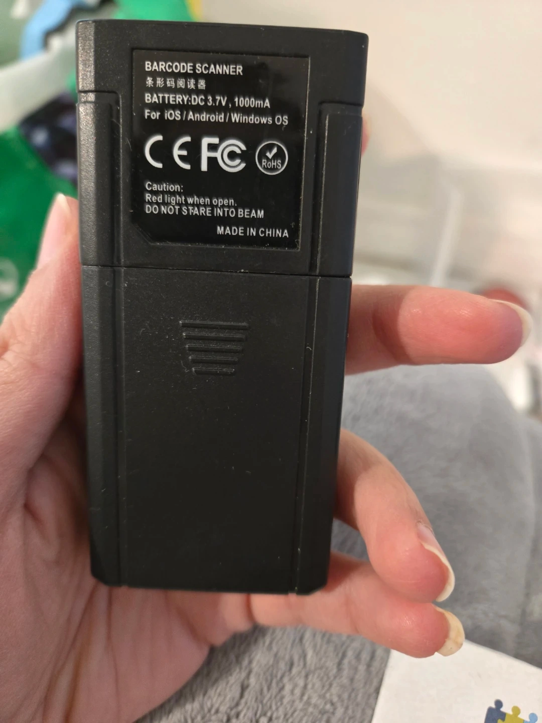 Selling a Malacricity barcode scanner! It's compatible with iOS, Android, and Windows OS. It requires a DC 3.7V, 1000mA battery.