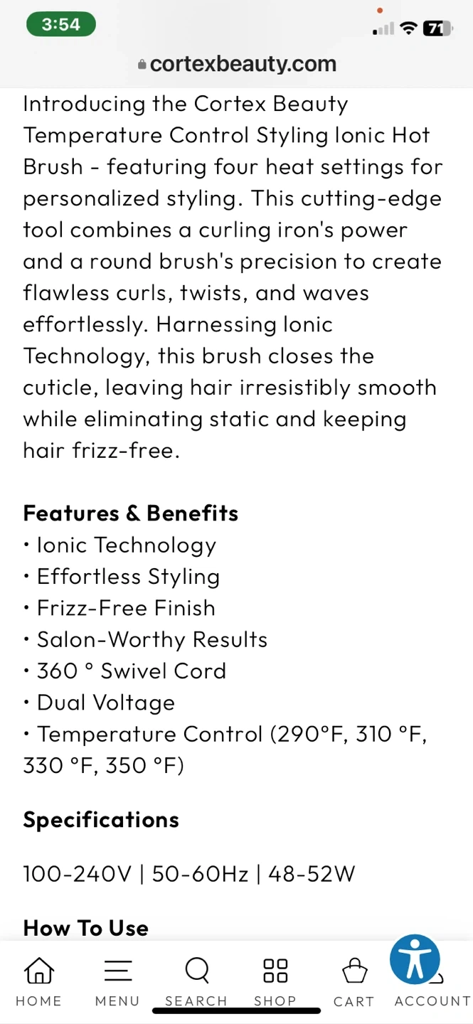 New in box Cortex 1.5” ionic styling brush 4 temperature control settings/temperature levels
