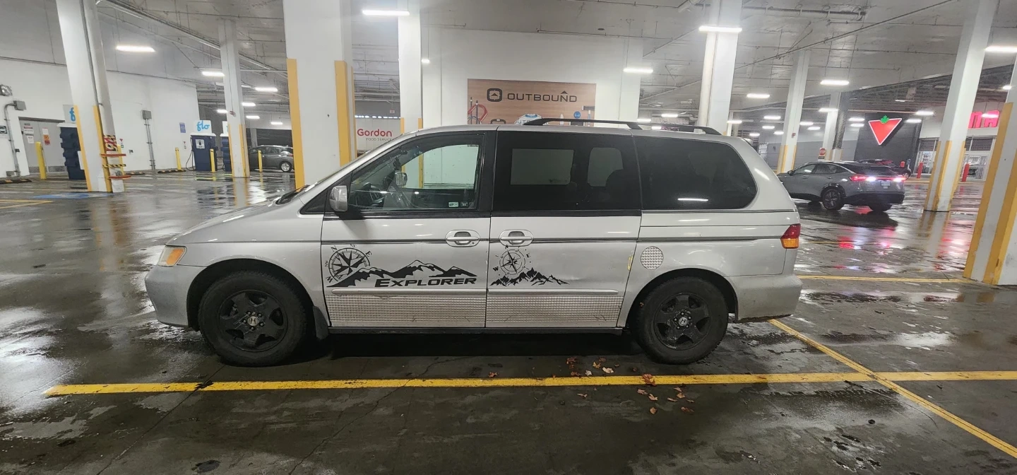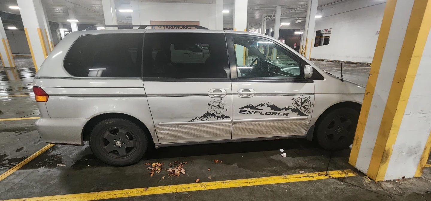 Selling a Honda Odyssey minivan. It has some custom decals on the side that say "Explorer".