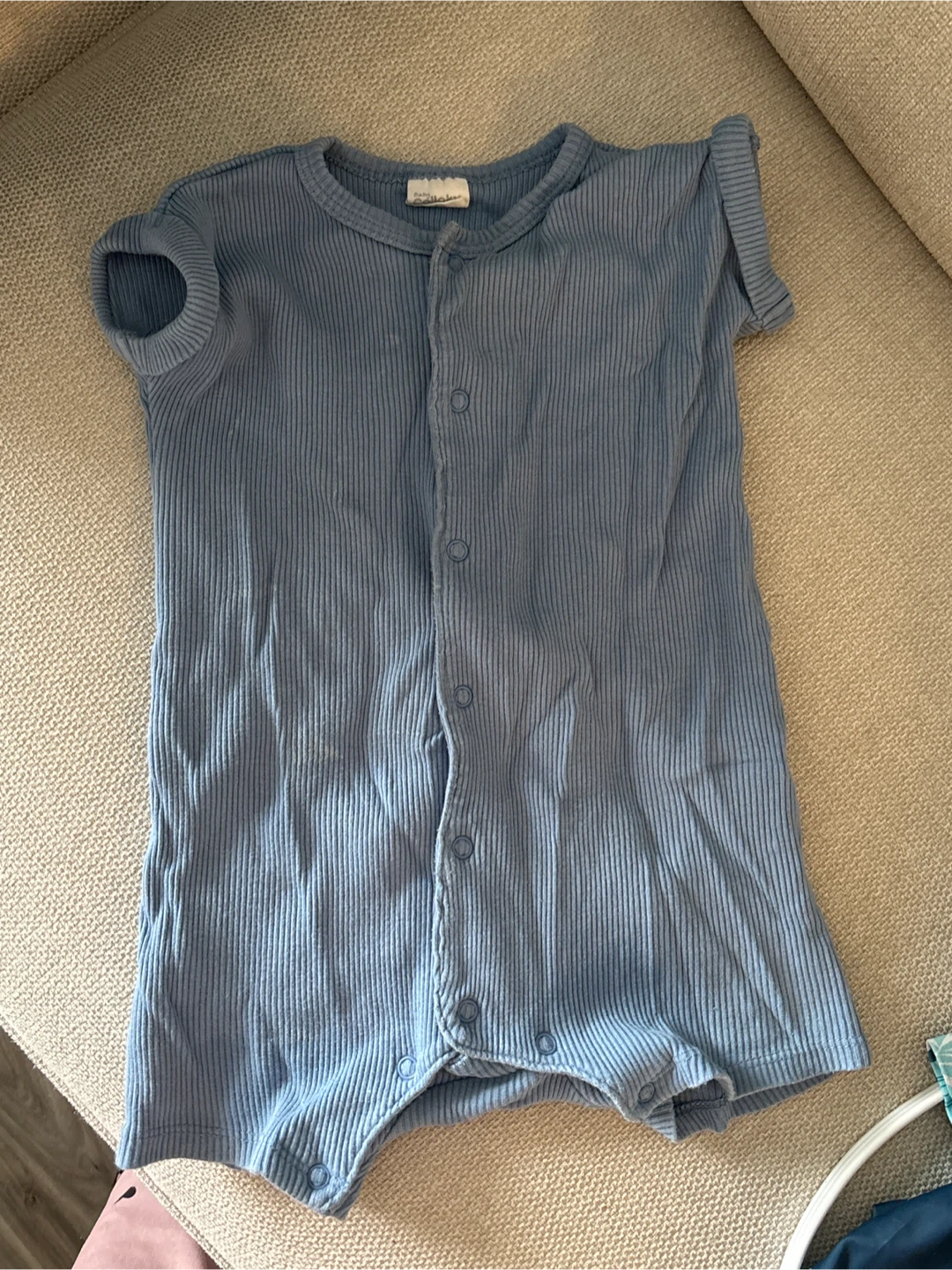 Cute baby blue ribbed romper! Great for summer days or layering in cooler weather. In good condition and ready for a new little one to enjoy
