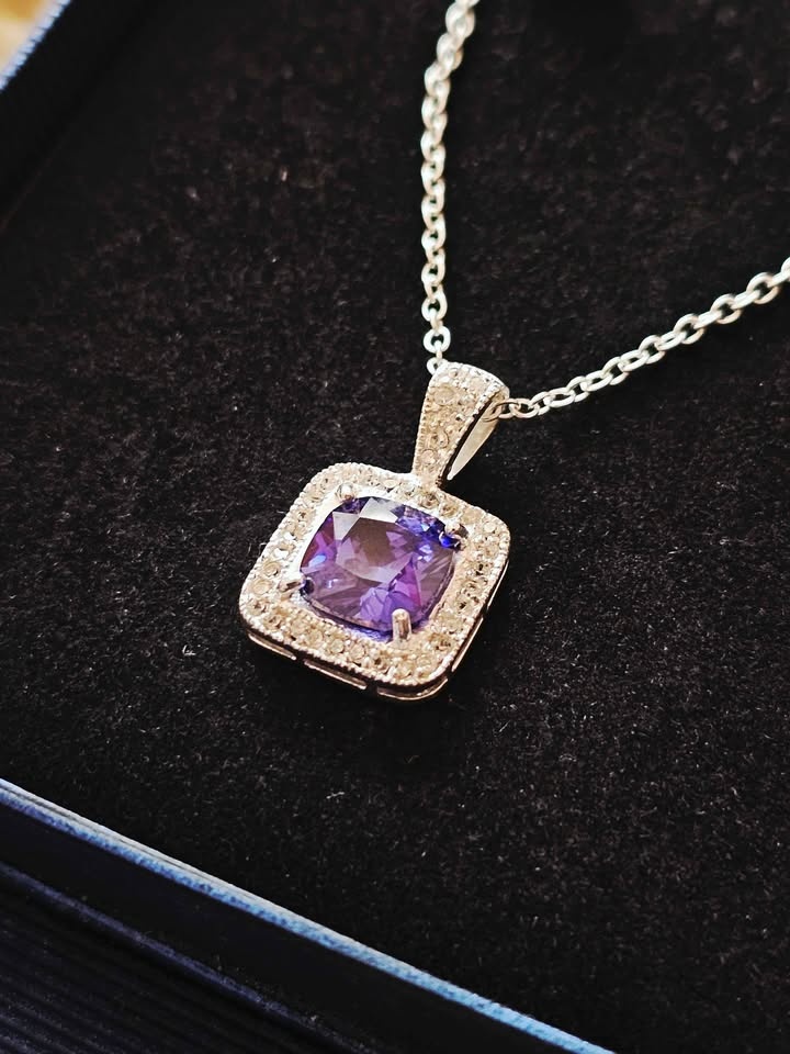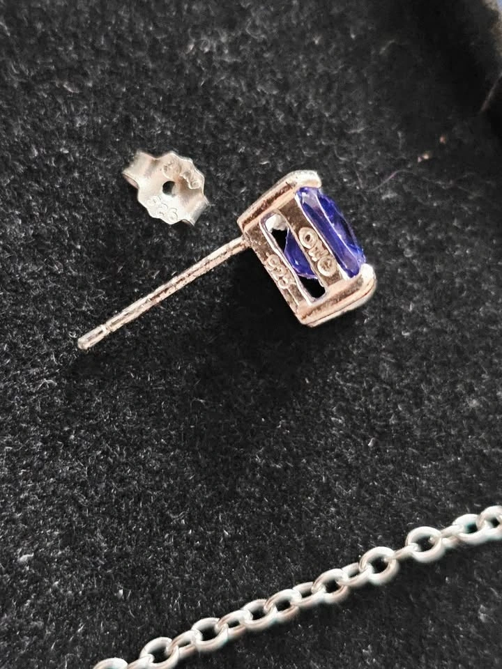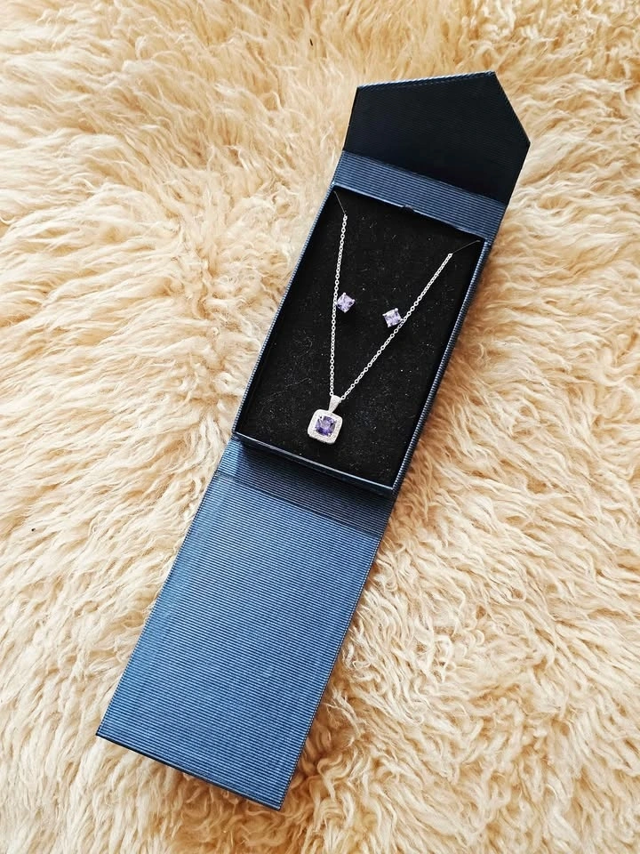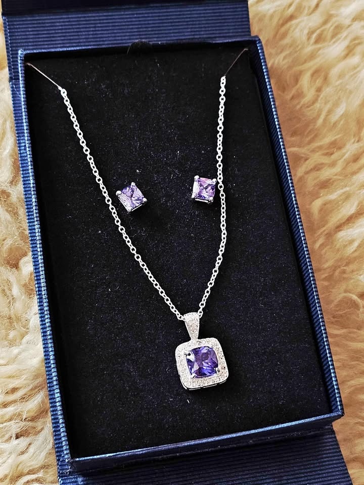 Sterling Silver Amethyst Necklace Earrings Set Gift Box 925