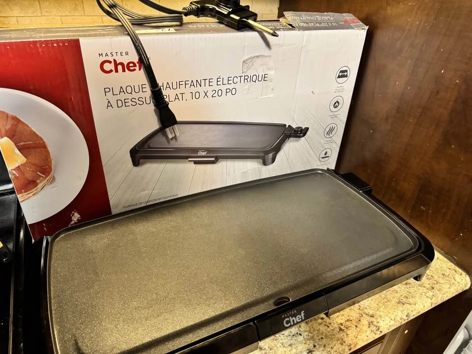 MASTER Chef Flat Top Electric Griddle w/ Warming Tray, Black, 10