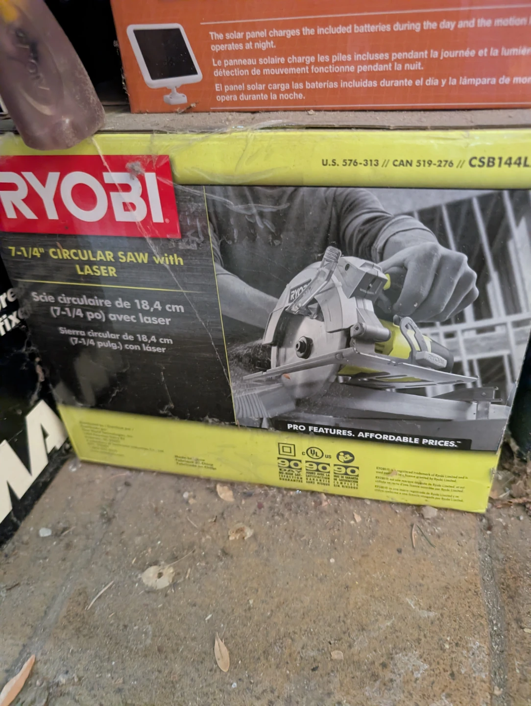 Selling a Ryobi 7-1/4" circular saw with laser, model CSB144L. It features a 18.4 cm blade and affordable prices.