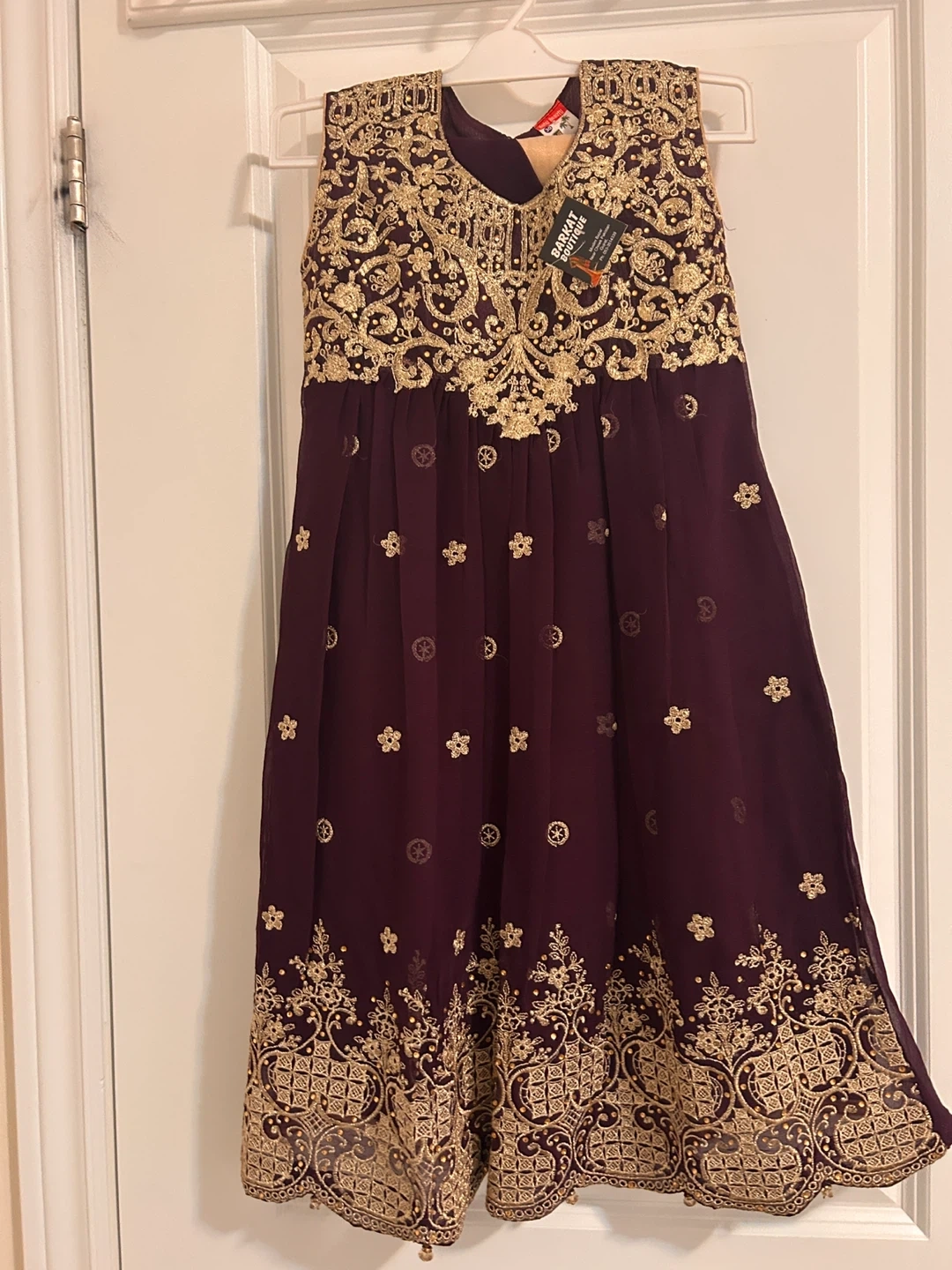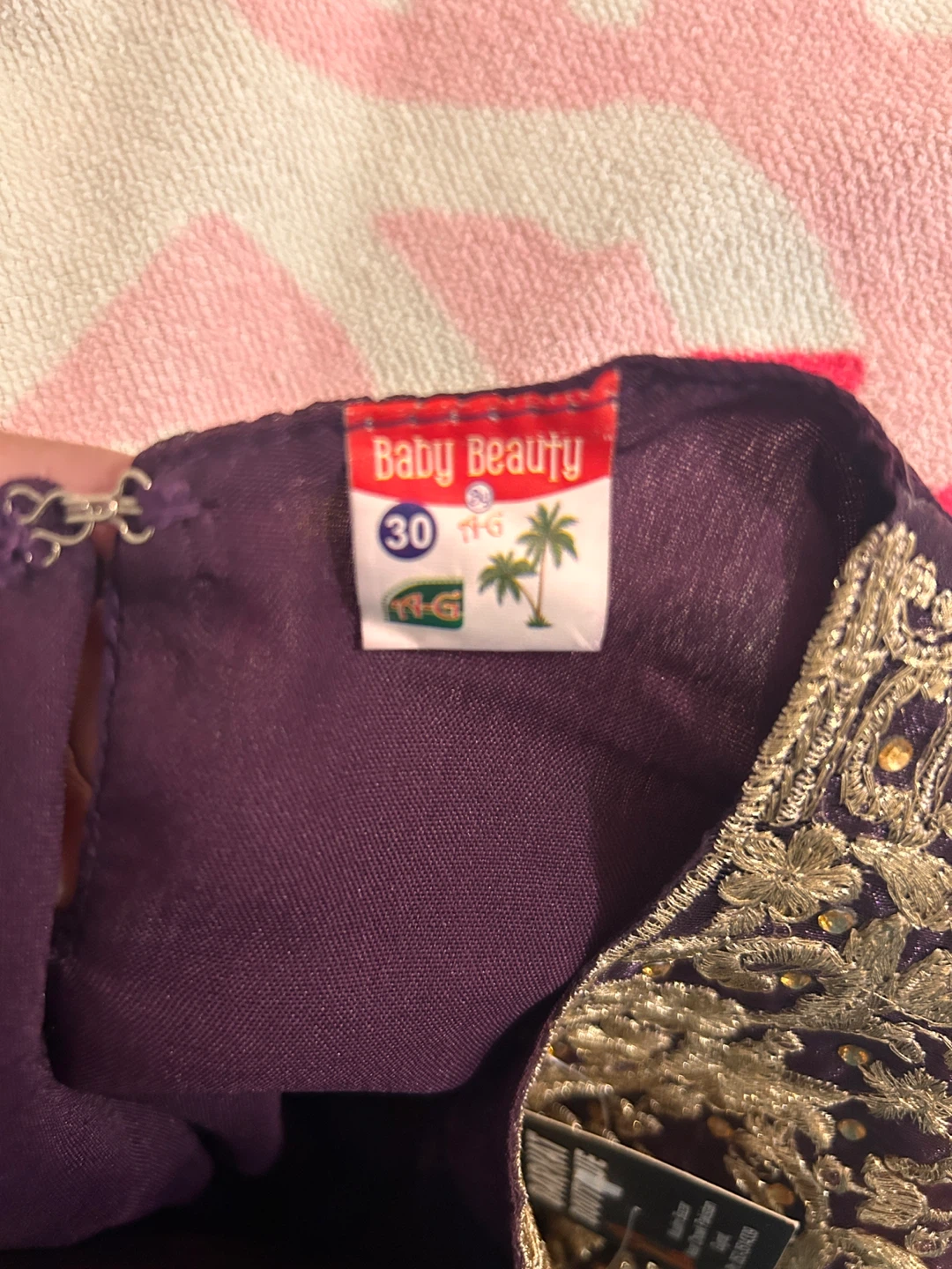Selling a beautiful Baby Beauty girl's dress. It's a lovely purple colour with gold detailing. Includes pants and a scarf. Size 30-34.For girls 8-12
