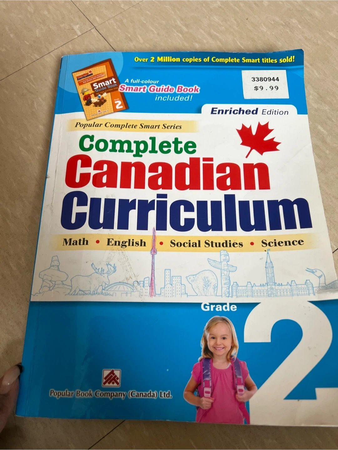 Selling a Complete Canadian Curriculum book for Grade 2. It covers Math, English, Social Studies and Science. It's part of the Popular Complete Smart Series and includes a Smart Guide Book