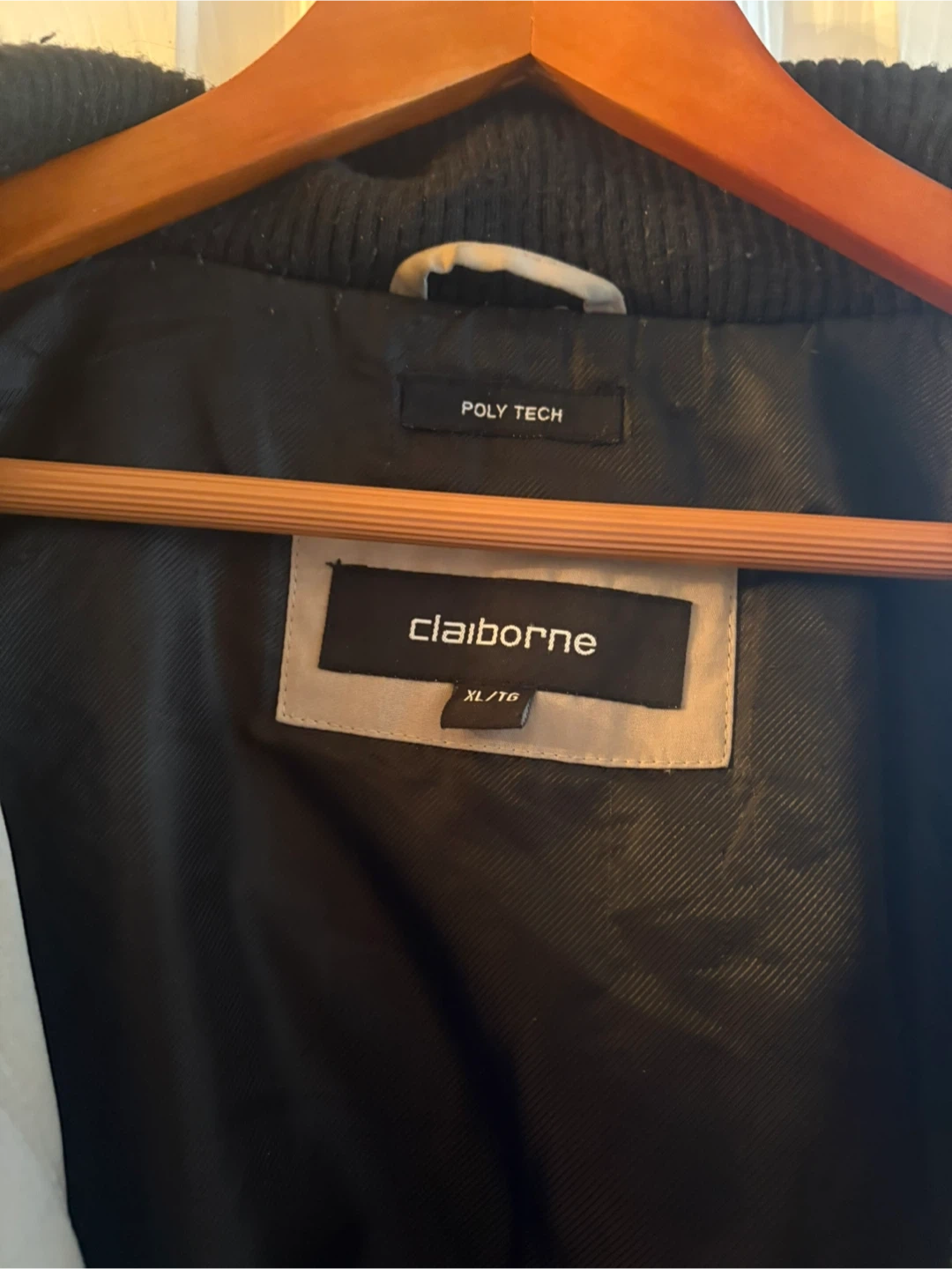 Claiborne Poly Tech jacket in size XL. The jacket is beige and black. It's in great condition and ready for a new owner!