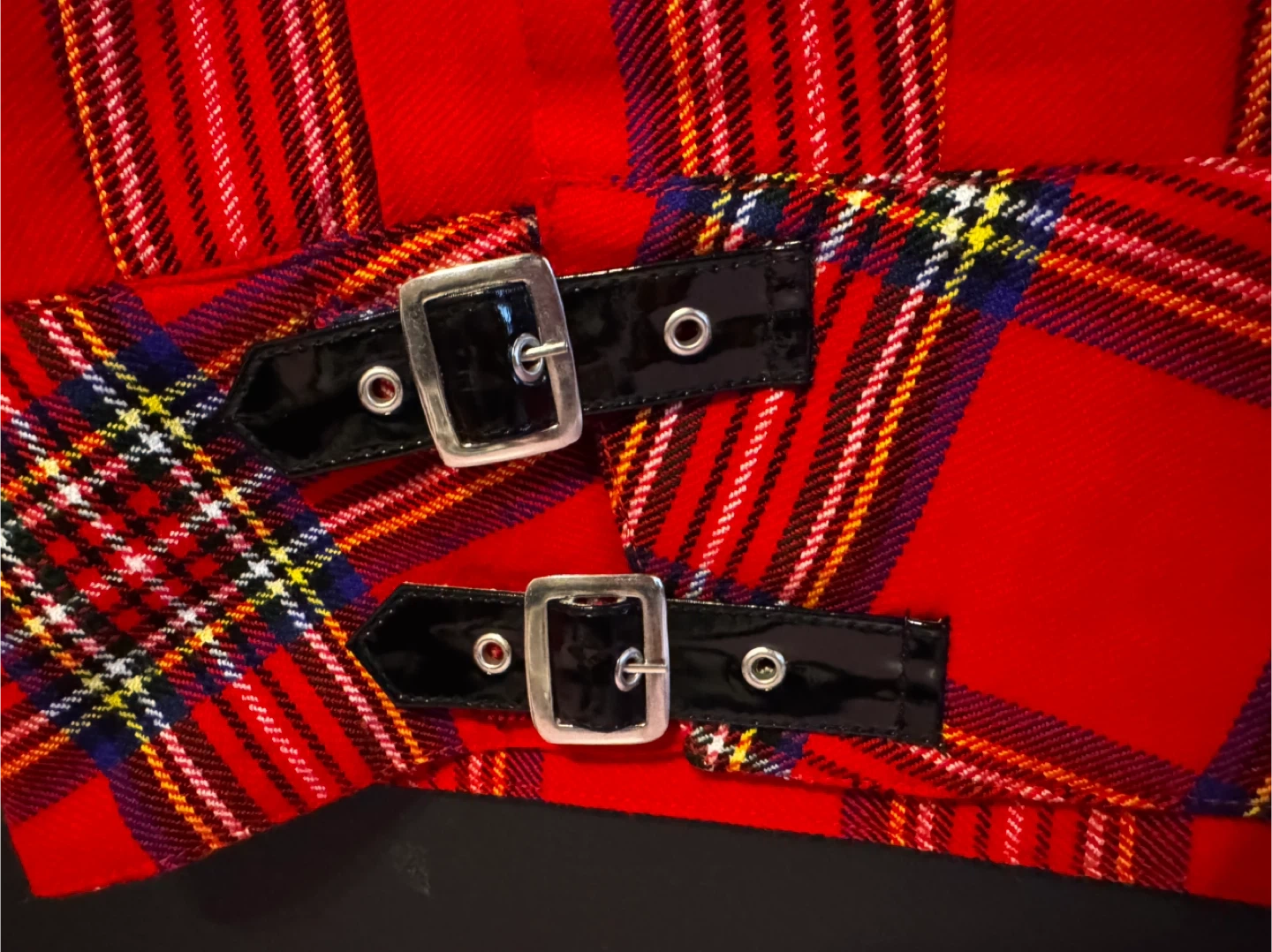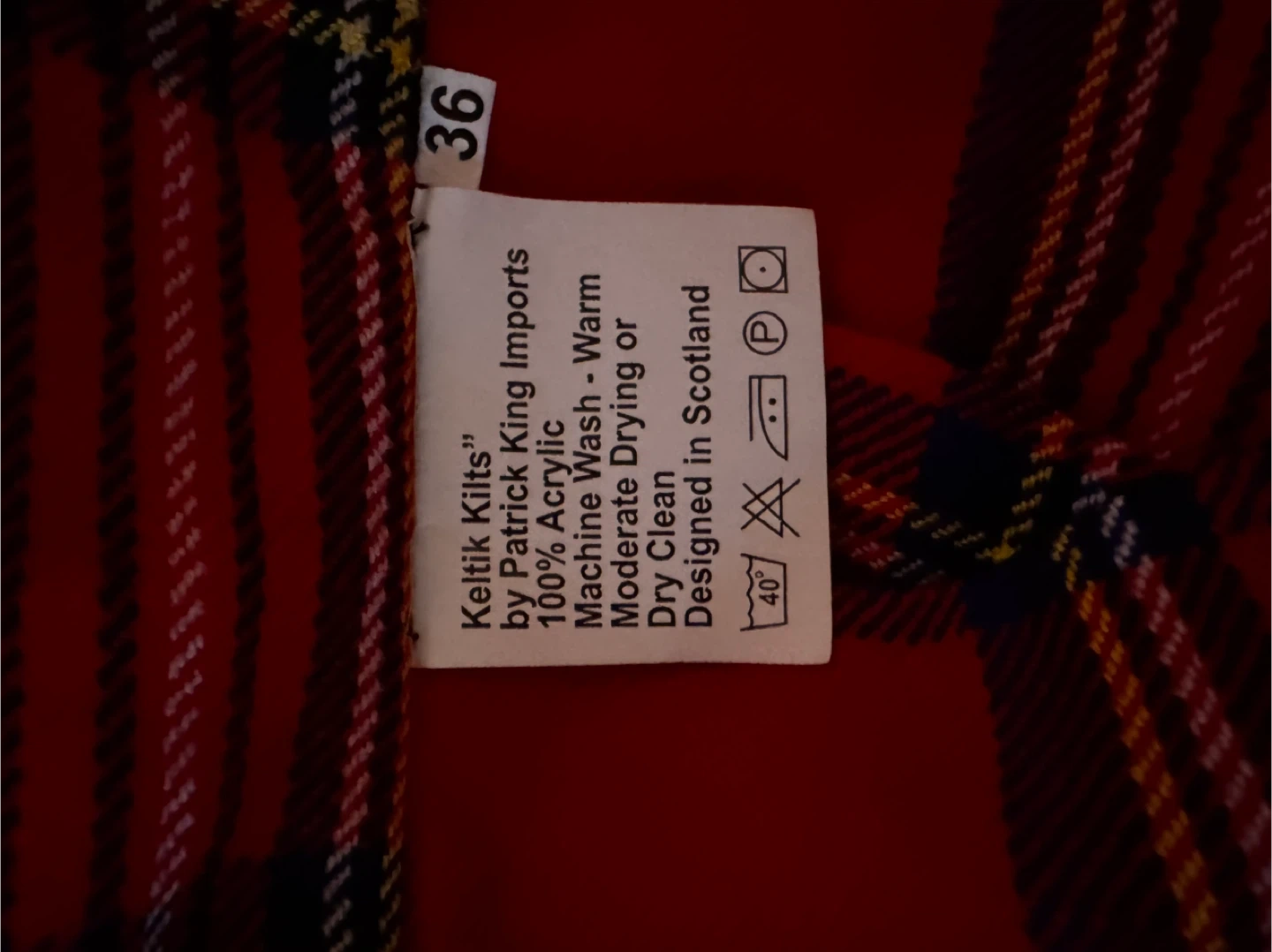 Selling a Keltik Kilts skirt in a vibrant red plaid pattern! The skirt is size 36 and made of 100% acrylic. It features adjustable straps with buckles and a decorative pin. Designed in Scotland!