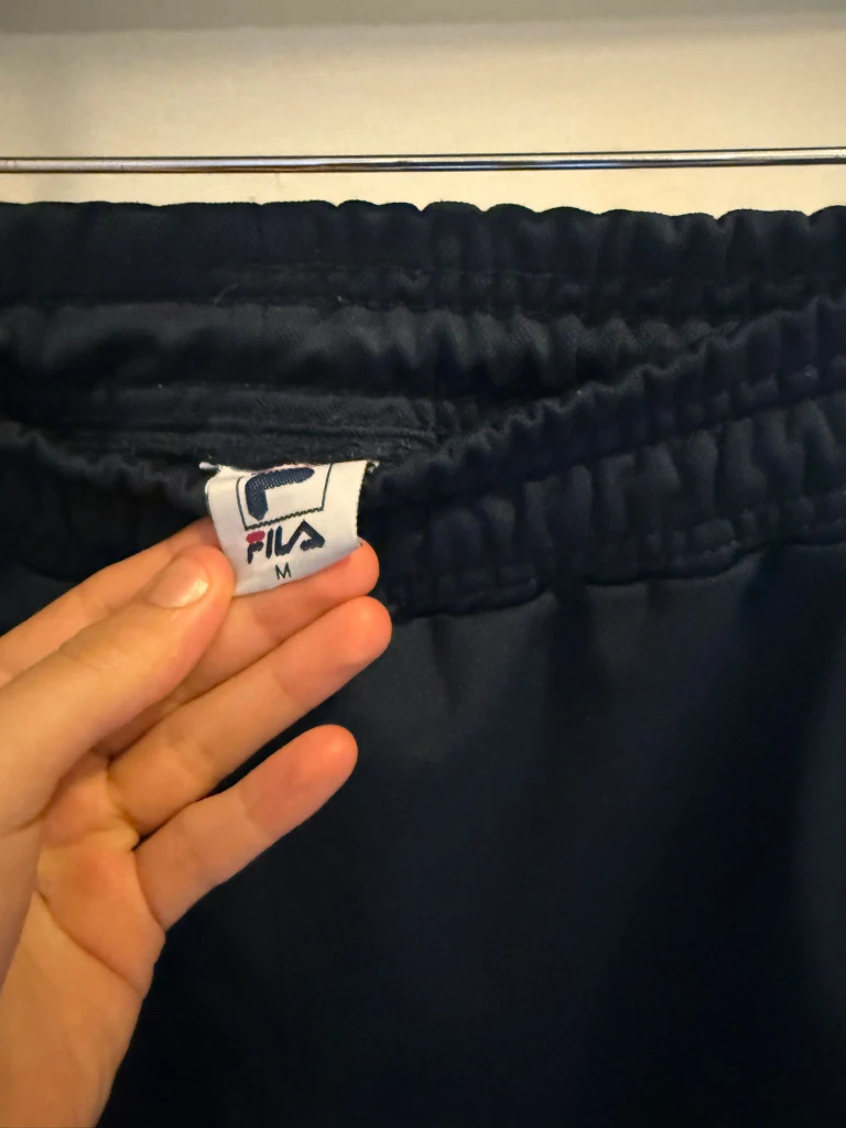 Selling a pair of Fila track pants in navy blue! They're a size medium and in great condition. Perfect for lounging or hitting the gym!