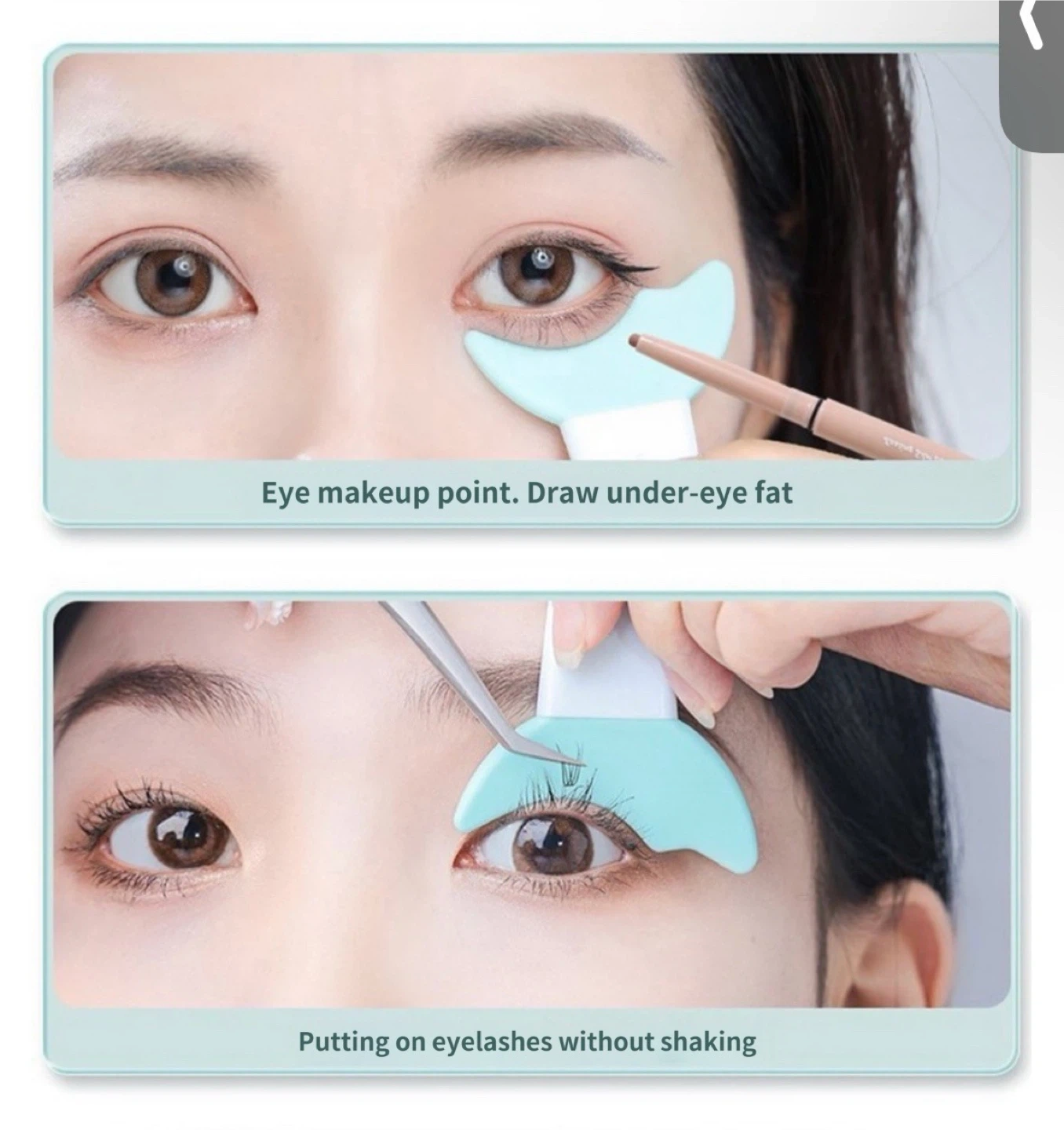 This is a multifunctional eyeliner tool. It's very close to the shape of your eyes and easy to wash off. It's made with flexible materials and has a soft touch. It's easy to clean and can be used for eyeliner, mascara, and artificial eyelashes