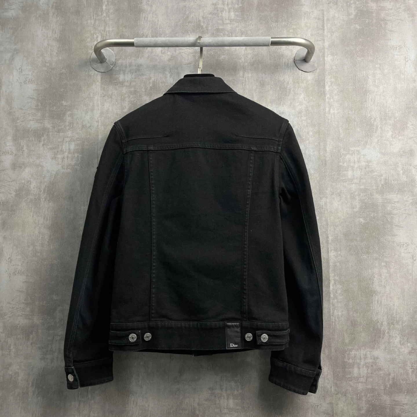 Selling a stylish black denim jacket from Dior. This jacket features unique embellishments and patches, adding a distinctive touch to a classic design. It's in great condition and ready to elevate your wardrobe!