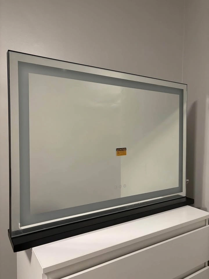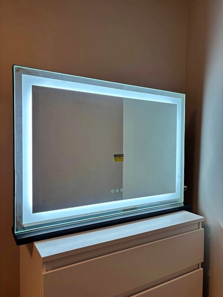 Simple Style Perfect Size Makeup Mirror: This vanity mirror has a perfect size 95L x 65W cm, large enough to provide a perfect upper body view. Simple style lights layout provide a clean and bright reflection allow you to get the most natural application of makeup, even in the evening.