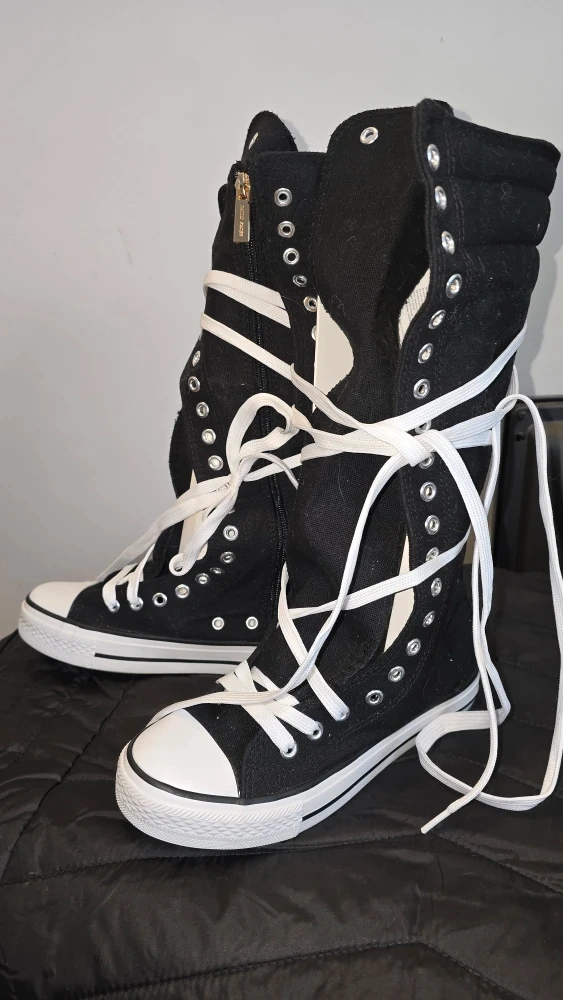 DAILY knee-high thick canvas runners in black/white With zipper entry They're brand new haven't even been laced up yet! size 6us 4uk Perfect for adding a bit of edge to your outfit!