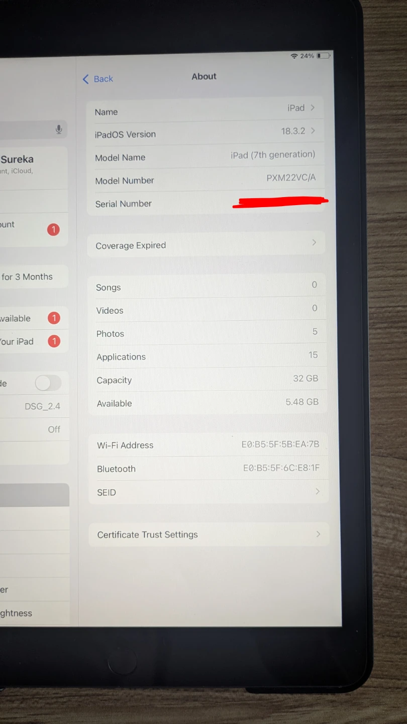 Selling an Apple iPad (7th generation) with 32GB of storage. The model number is PXM22VC/A. It's in great condition and ready for a new user!
