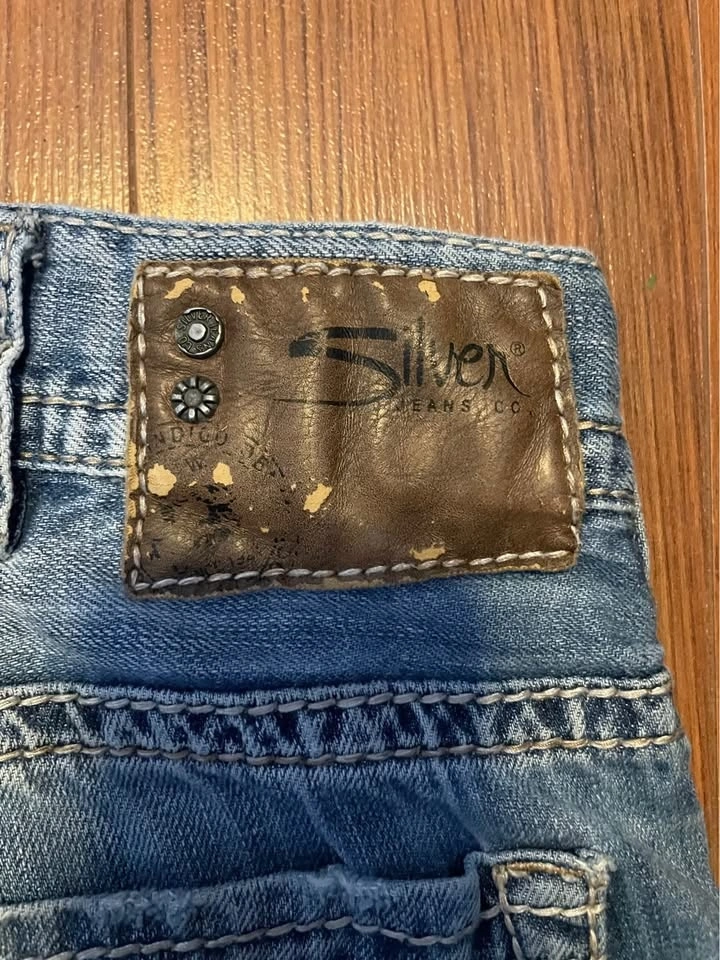 Vintage Silver jeans size 38x32 they have sick rips in the front of they giving them a unique look