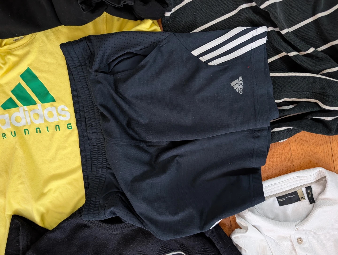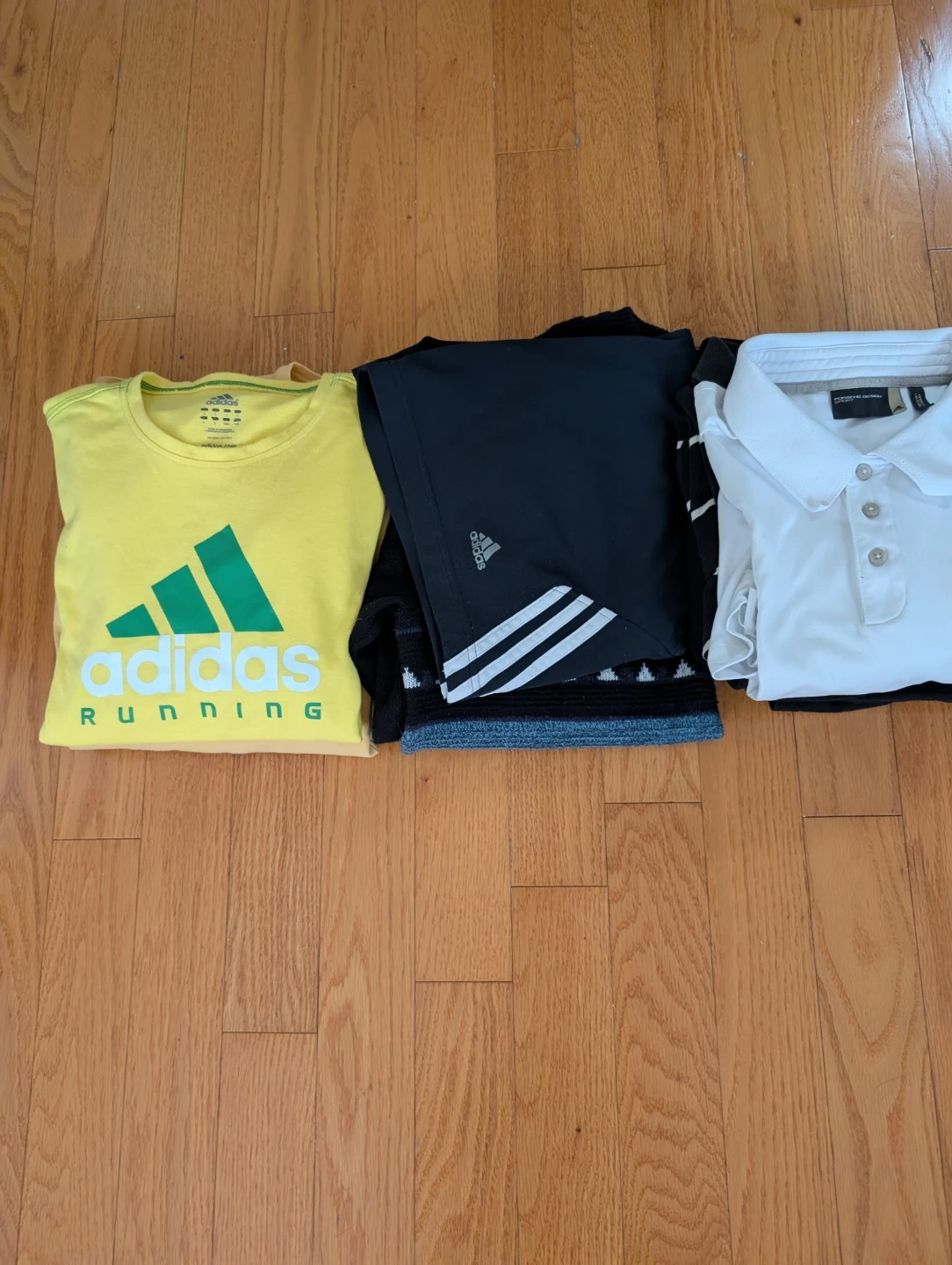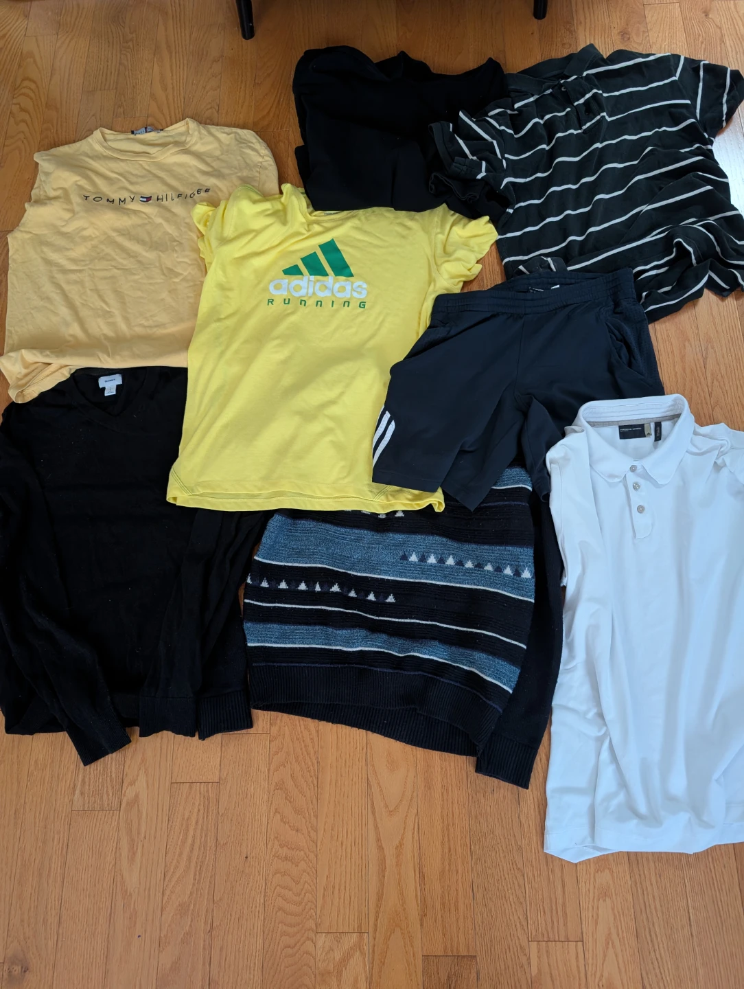 Selling a mixed lot of clothing. Includes items from Tommy Hilfiger, Adidas (including a running shirt and shorts), etc. .Sizes M, L, XL The price is for the whole bundle.