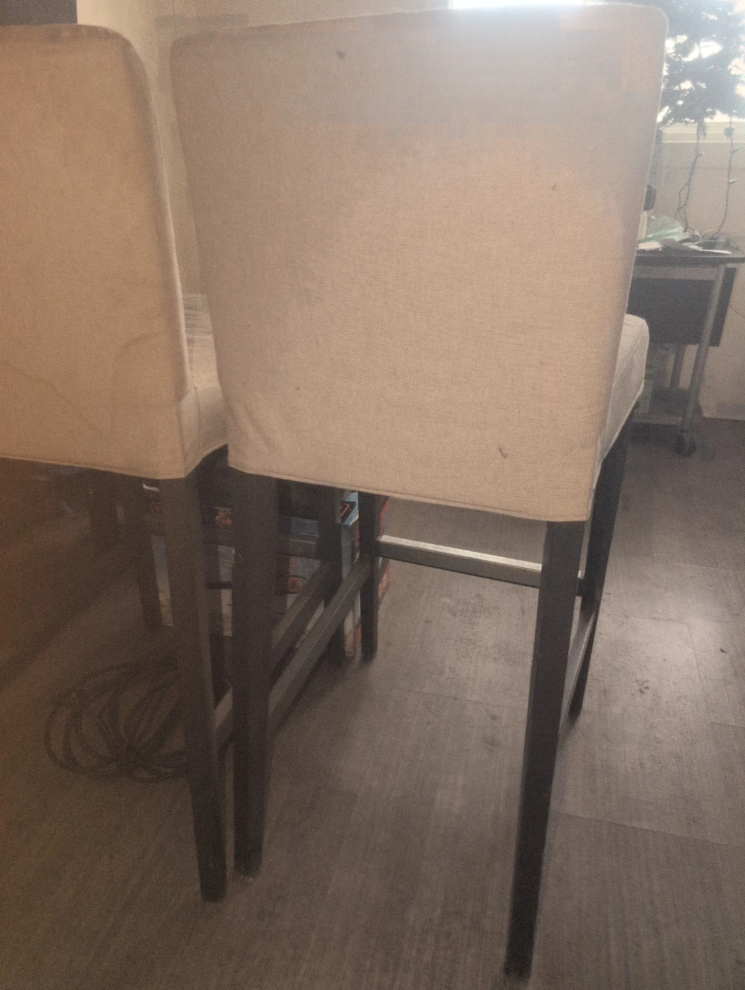 Two Beige Bar Stools