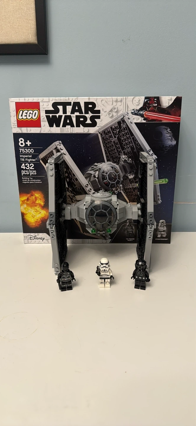 Selling a LEGO Star Wars Imperial TIE Fighter set (75300). It's designed for ages 8 and up and includes 432 pieces. Great for any Star Wars or LEGO fan!