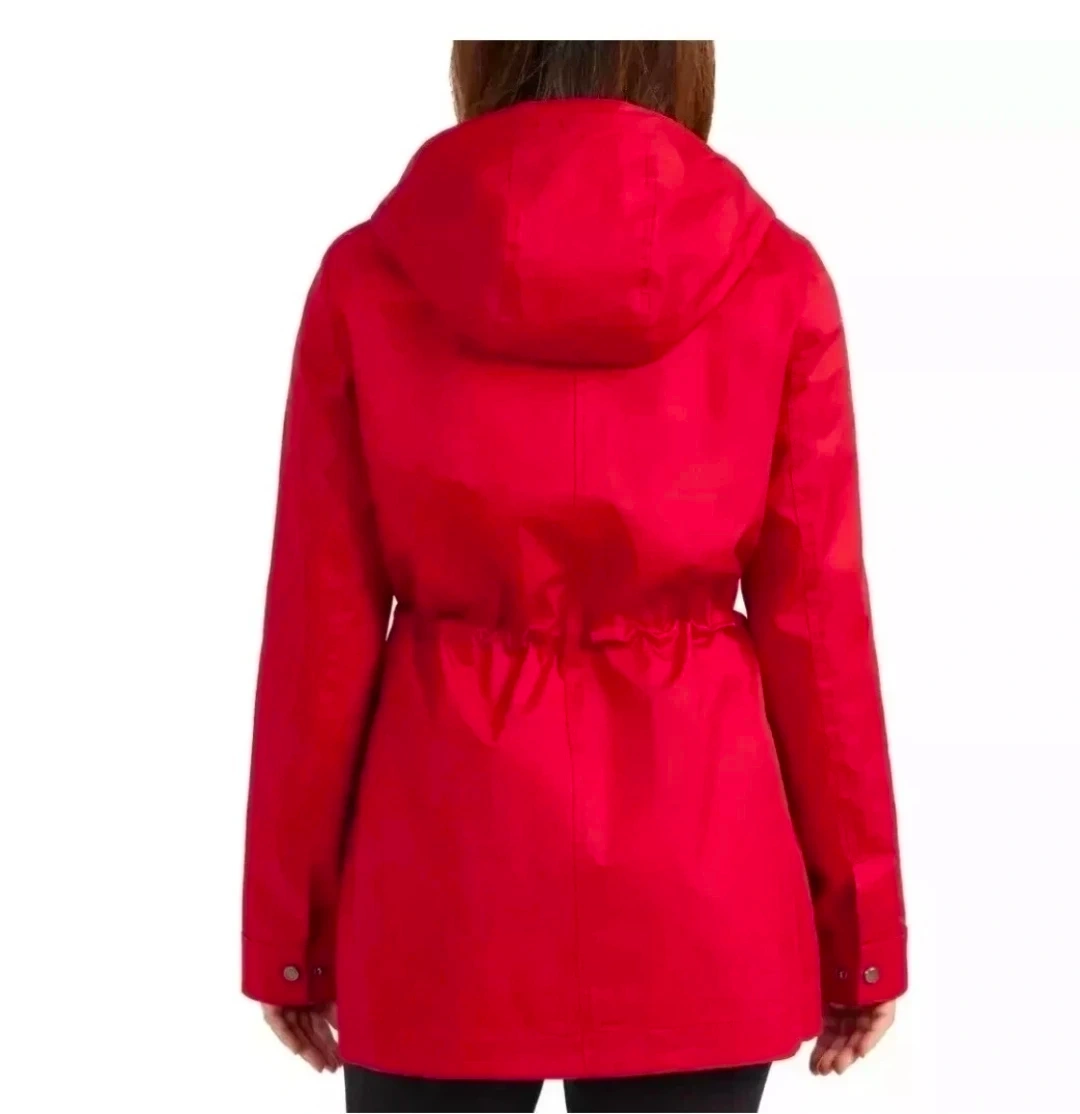 This stylish and functional raincoat is perfect for staying dry and looking good. The bright red color will definitely make you stand out!