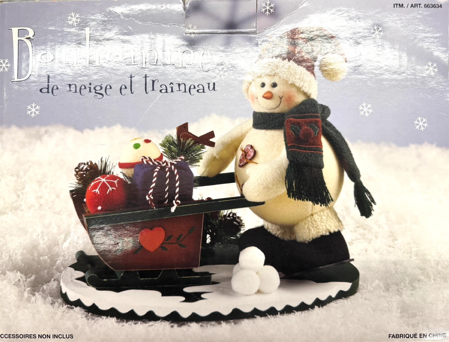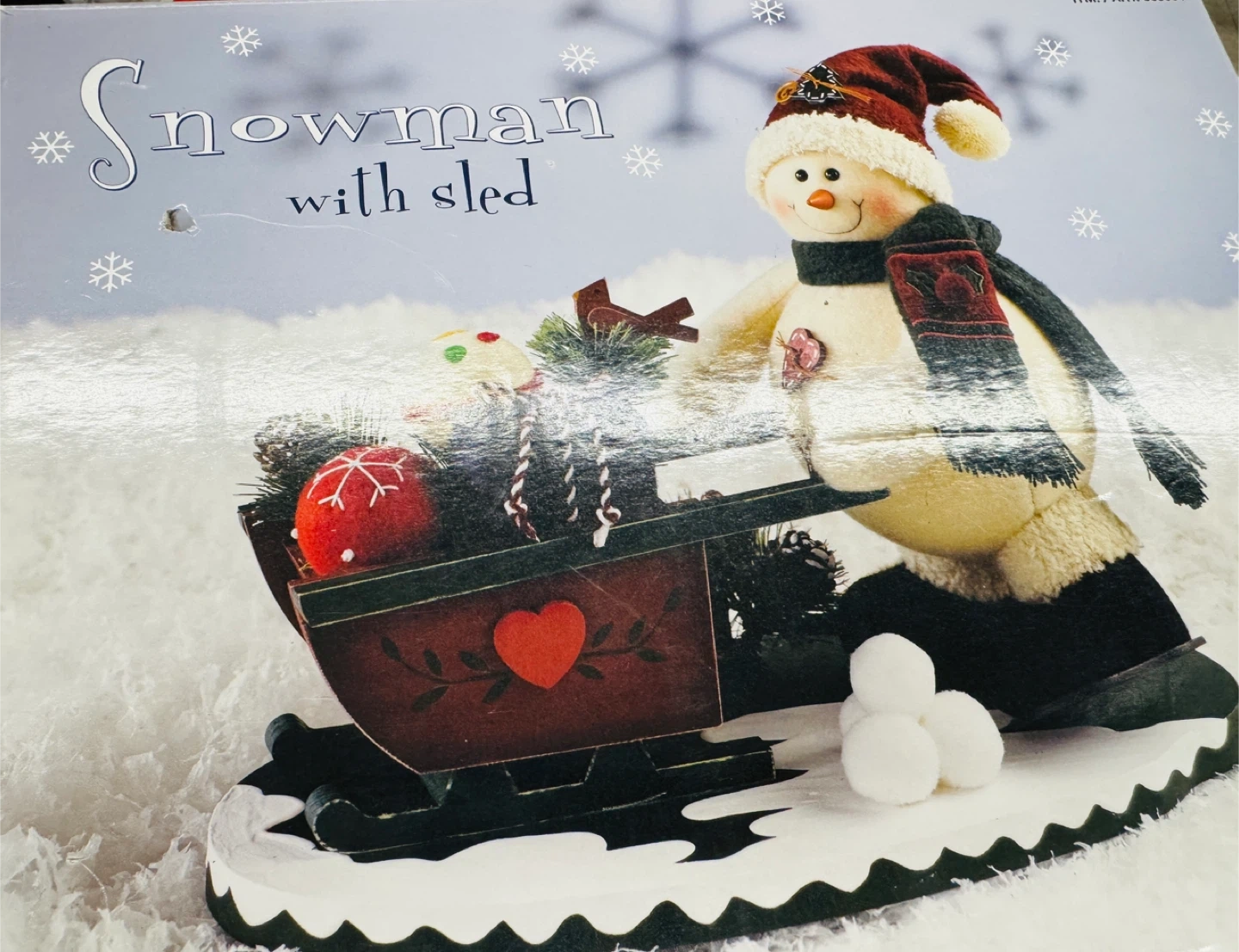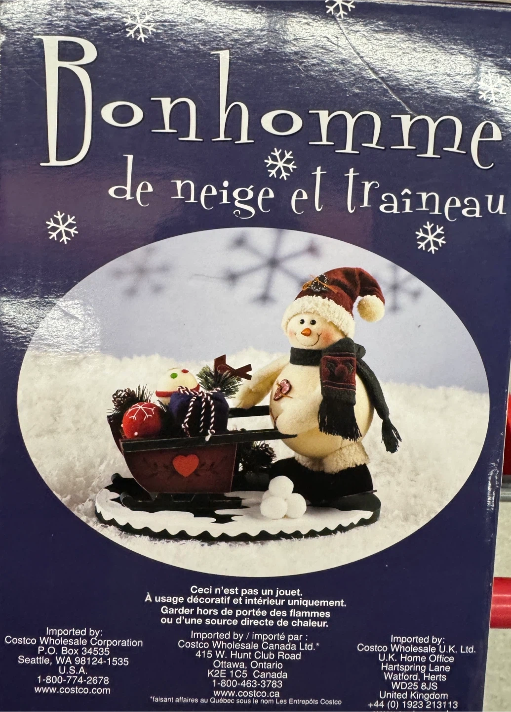 This is a cute snowman with sled decoration from Costco! It's in great condition and comes with the original box. Perfect for adding a touch of winter charm to your home