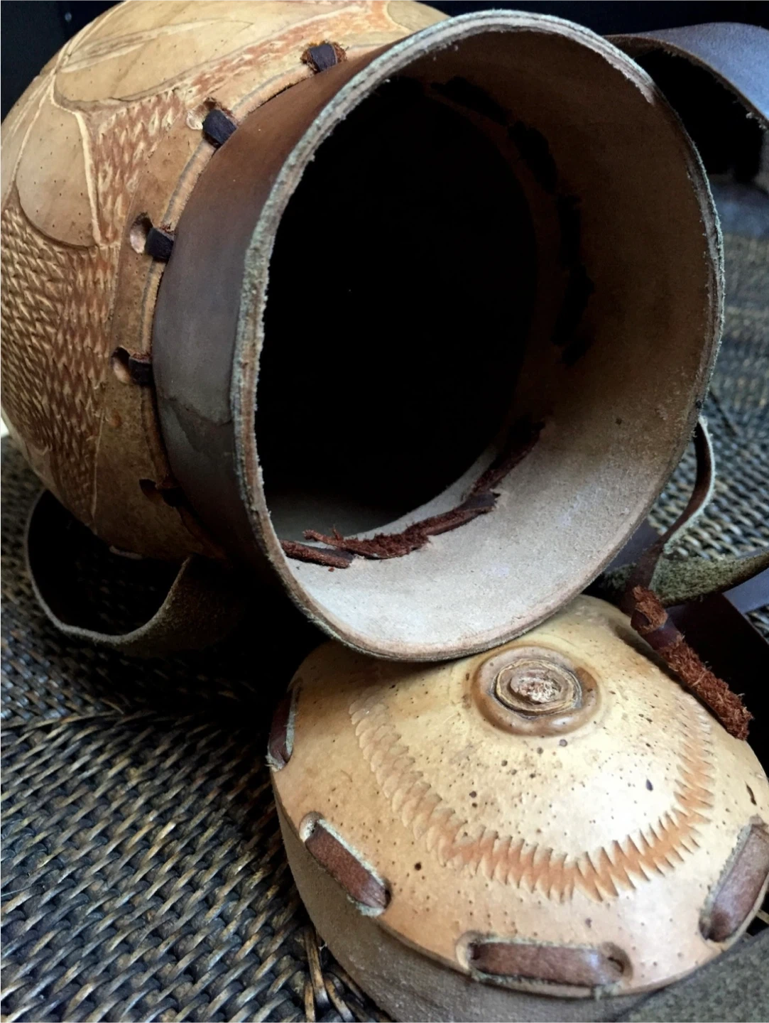 •Selling a set of unique hand-carved gourd hanging planters.