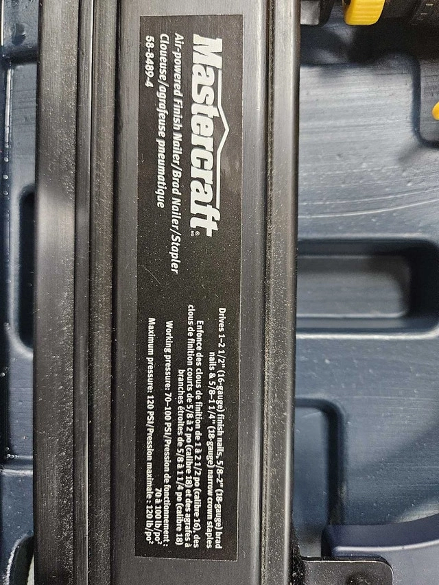 Selling a Mastercraft Air Powered Finished Nailer/Brad Nailer/Stapler. Brand new never used still in its plastic. Canadian Tire original price $199.00