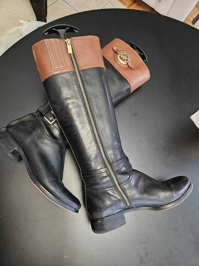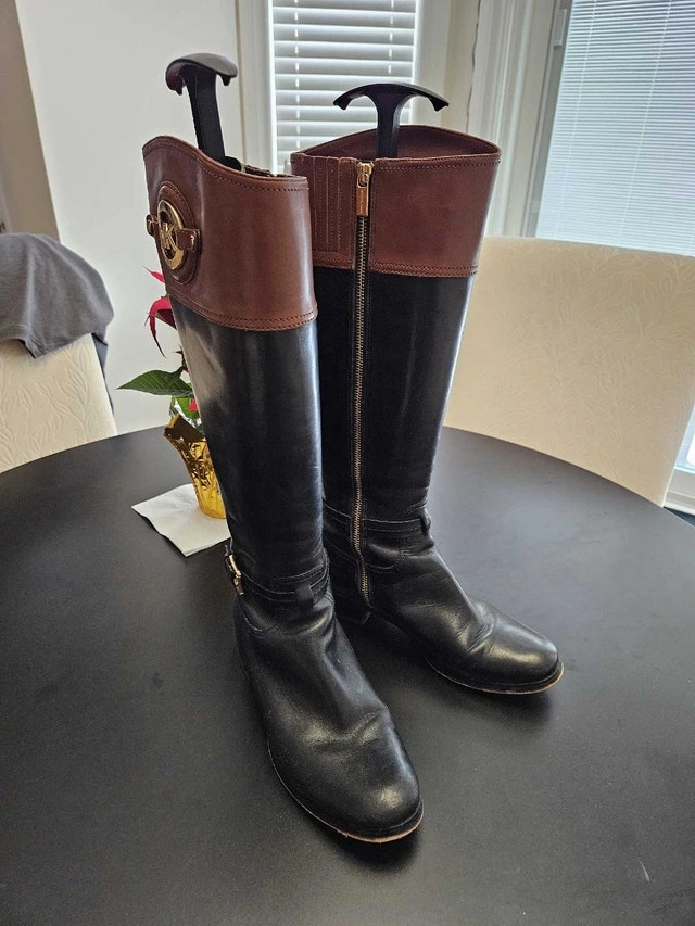 Selling Michael Kors Women’s Two Toned Riding Boots Leather Black/Brown W: 8M for $80.00 or best offer In great condition. Well maintained.