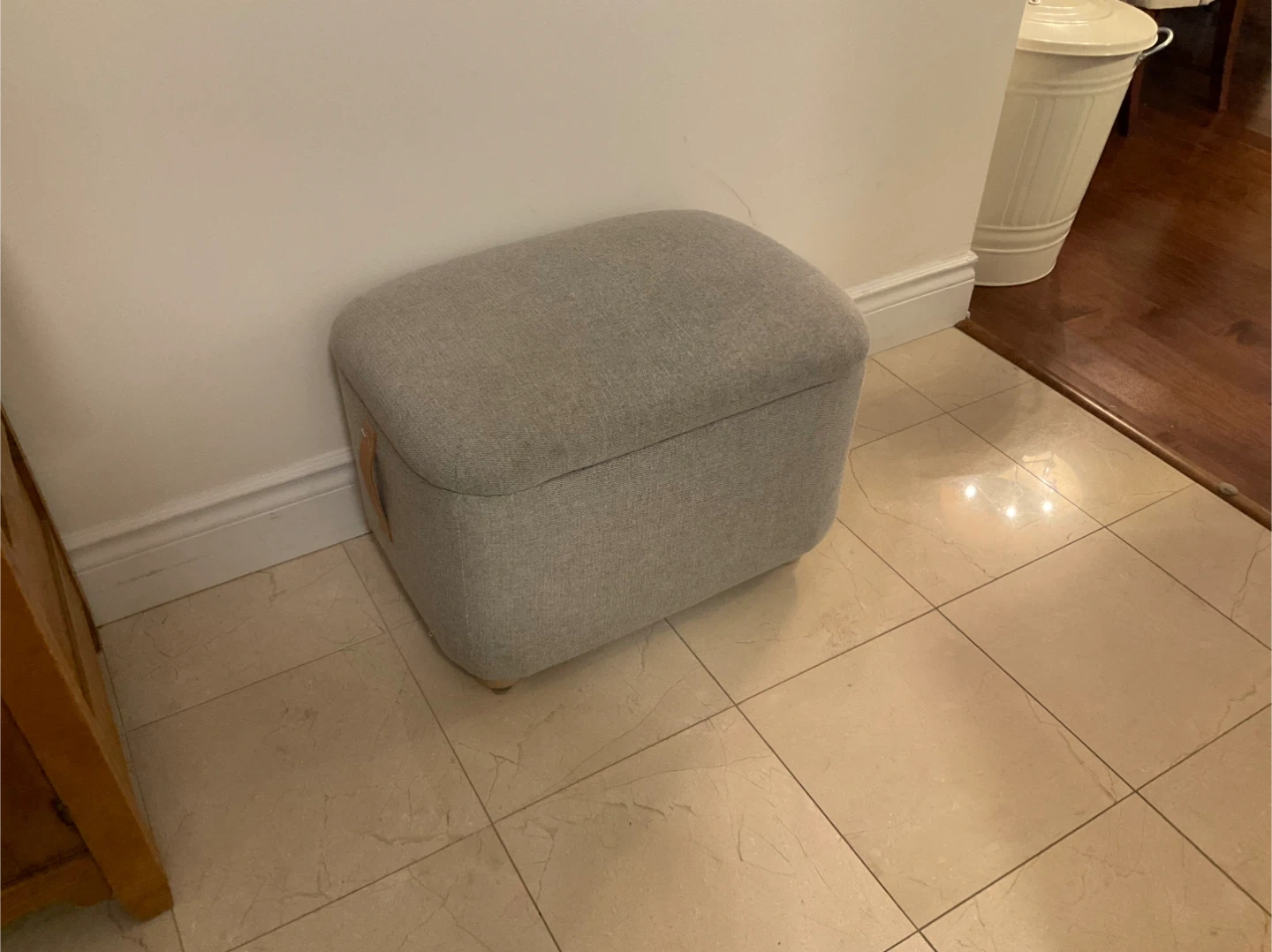 Selling a grey storage ottoman in great condition. It's perfect for storing shoes, blankets, or anything else you need to keep out of sight. The ottoman is a light grey colour and would look great in any room!