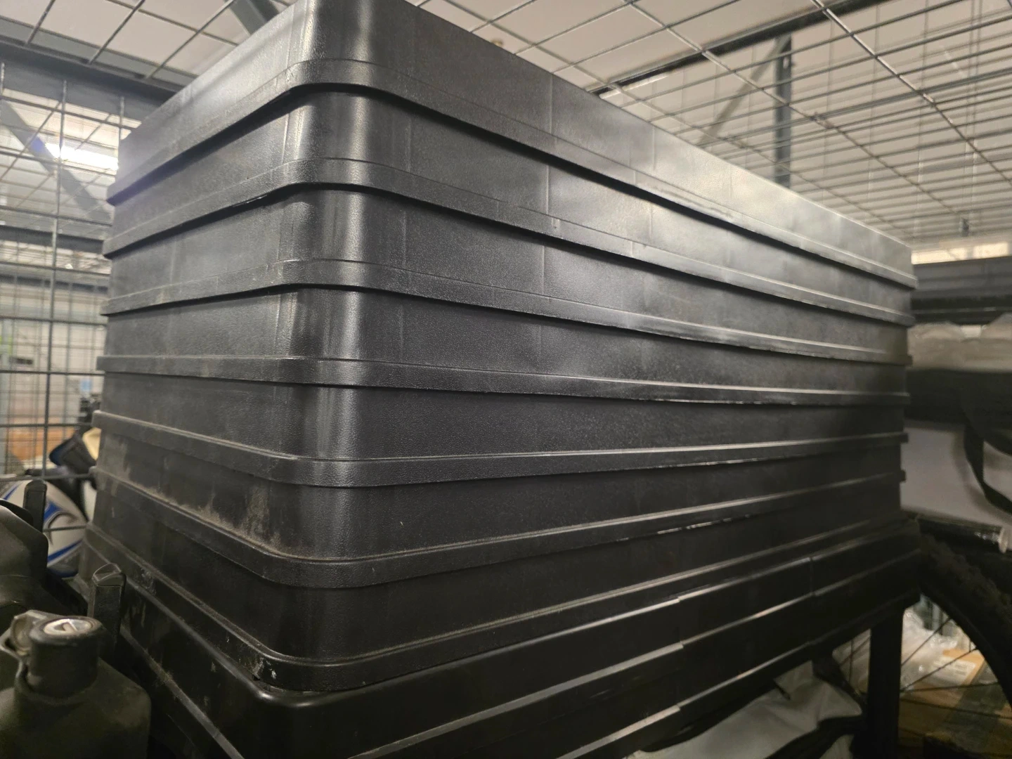 Selling a black plastic storage shelf. It's in good condition and ready to help organize your space!