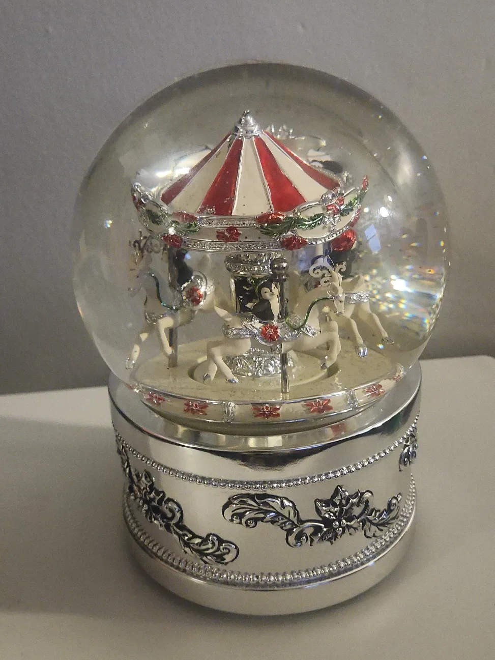 Large 'Things Remembered' Jingle Bells carousel snow globe! It's in great condition and would make a lovely addition to any collection. It does have the name Jane engraved on it, but it's not super noticeable. Originally bought for $100.