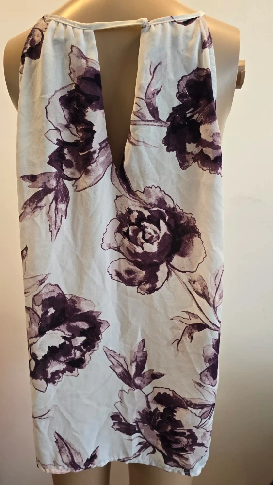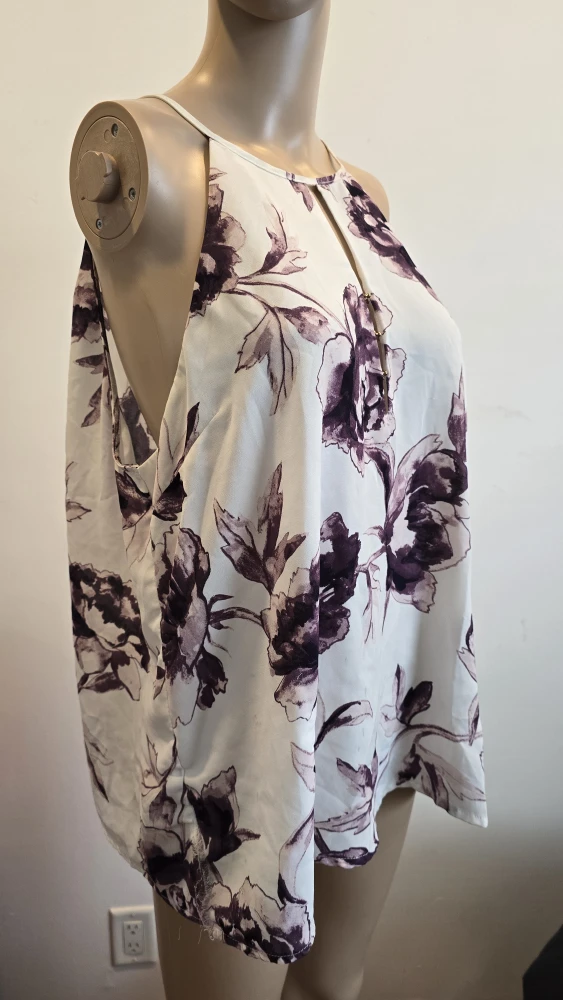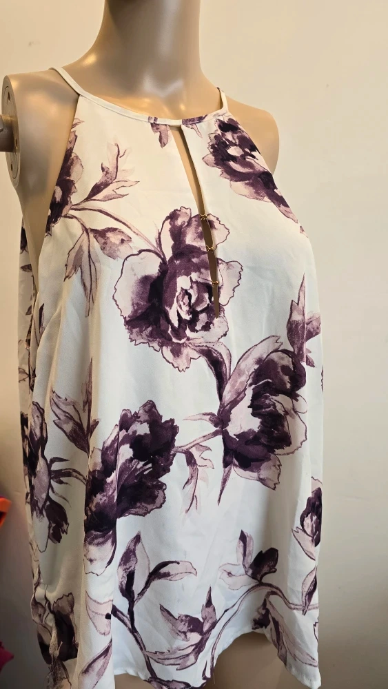 a cute halter top with a floral print! It's perfect for summer days or evenings out. The top features a keyhole neckline and a sleeveless design. It's in great condition and ready for a new home!