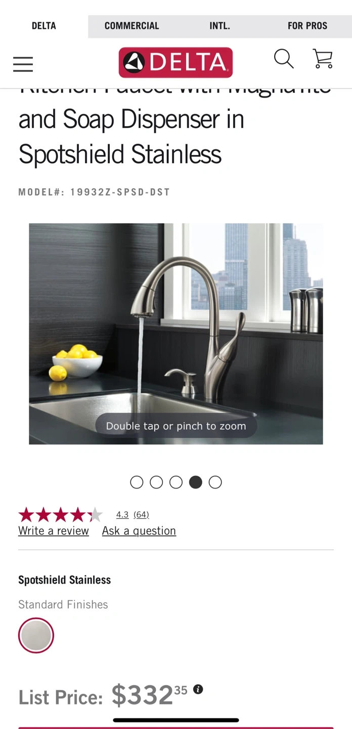 I'm selling a brand new Delta Berkley kitchen faucet with SpotShield Stainless finish! It comes in the original box and includes all components. The model number is 19932Z-SPSD-DST. The box says it has ShieldSpray Technology and MagnaTite Docking System. Retails for $332.35