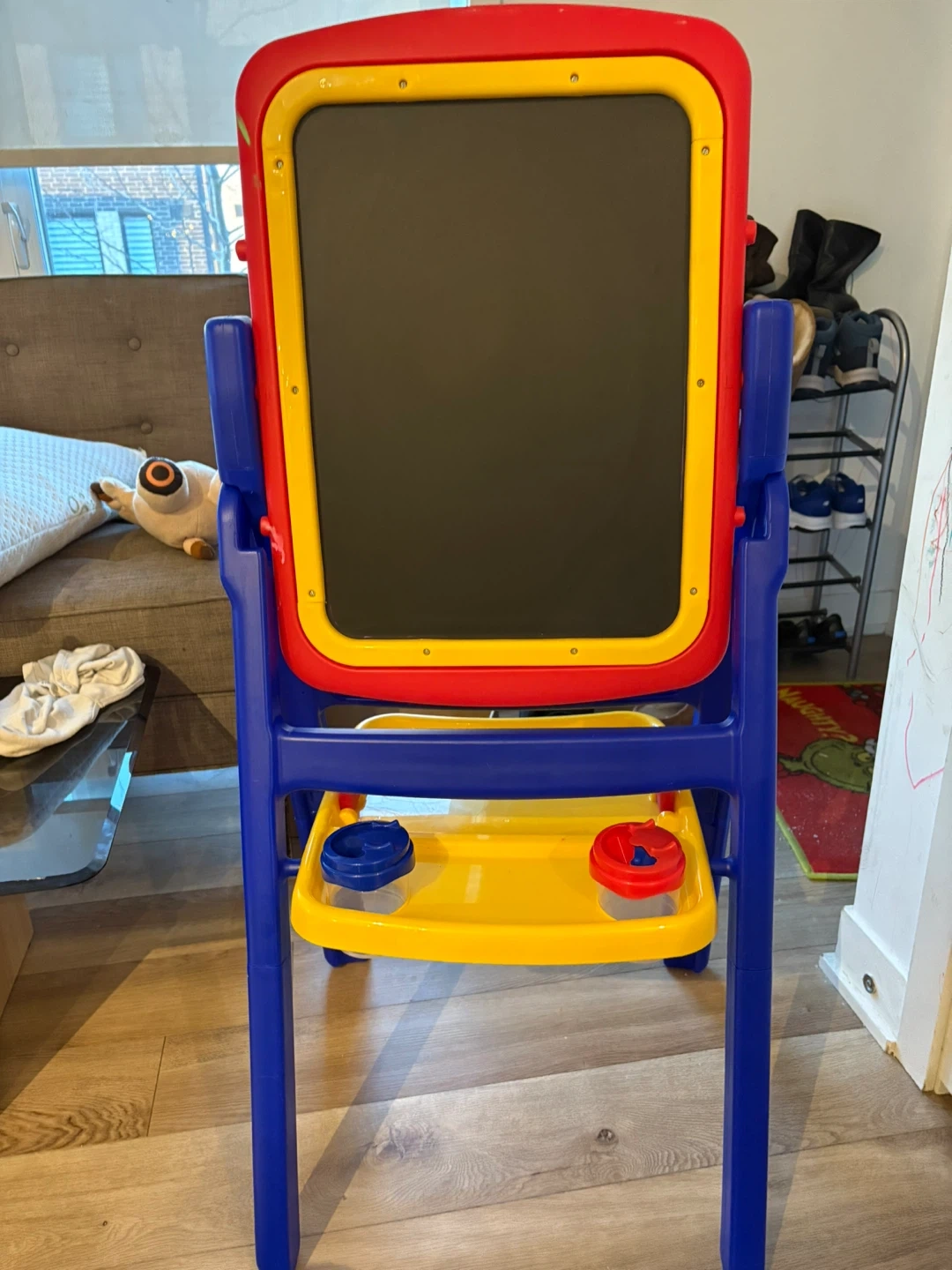 Selling a kids' easel, brand new just purchased few months ago. It's got a whiteboard on one side and a chalkboard on the other.
