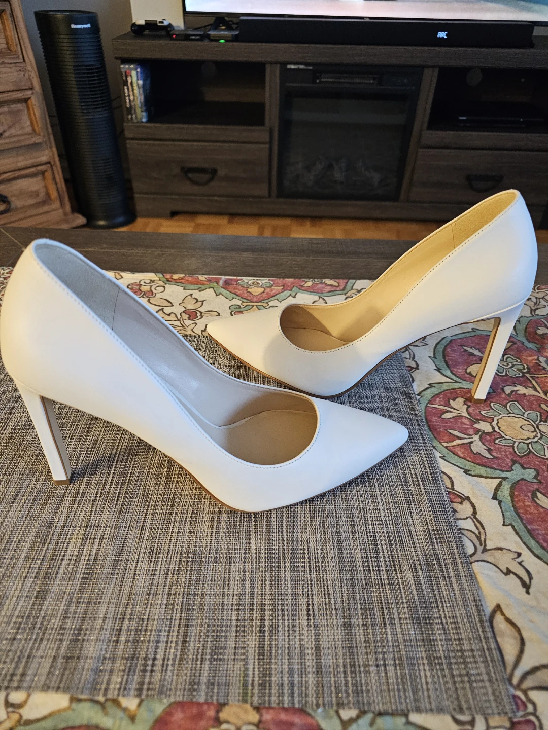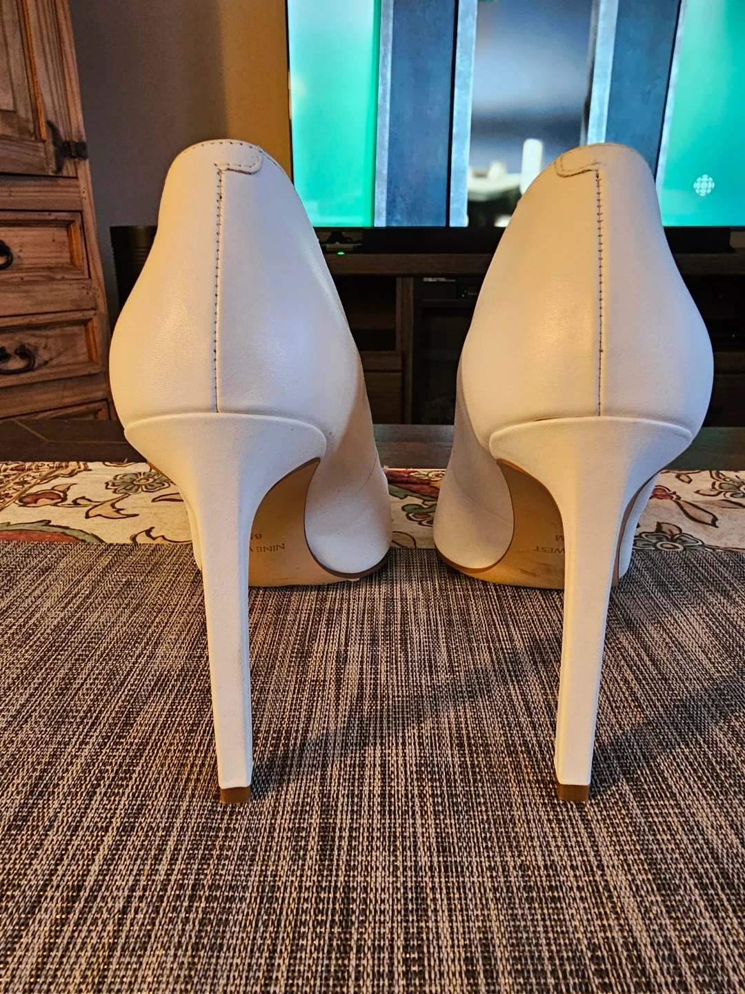 Selling a pair of vintage Nine West Tatiana heels in white leather, size 8.5M. They are newcondition and were originally bought for $130. Perfect for a night out or a special occasion! Wedding maybe?