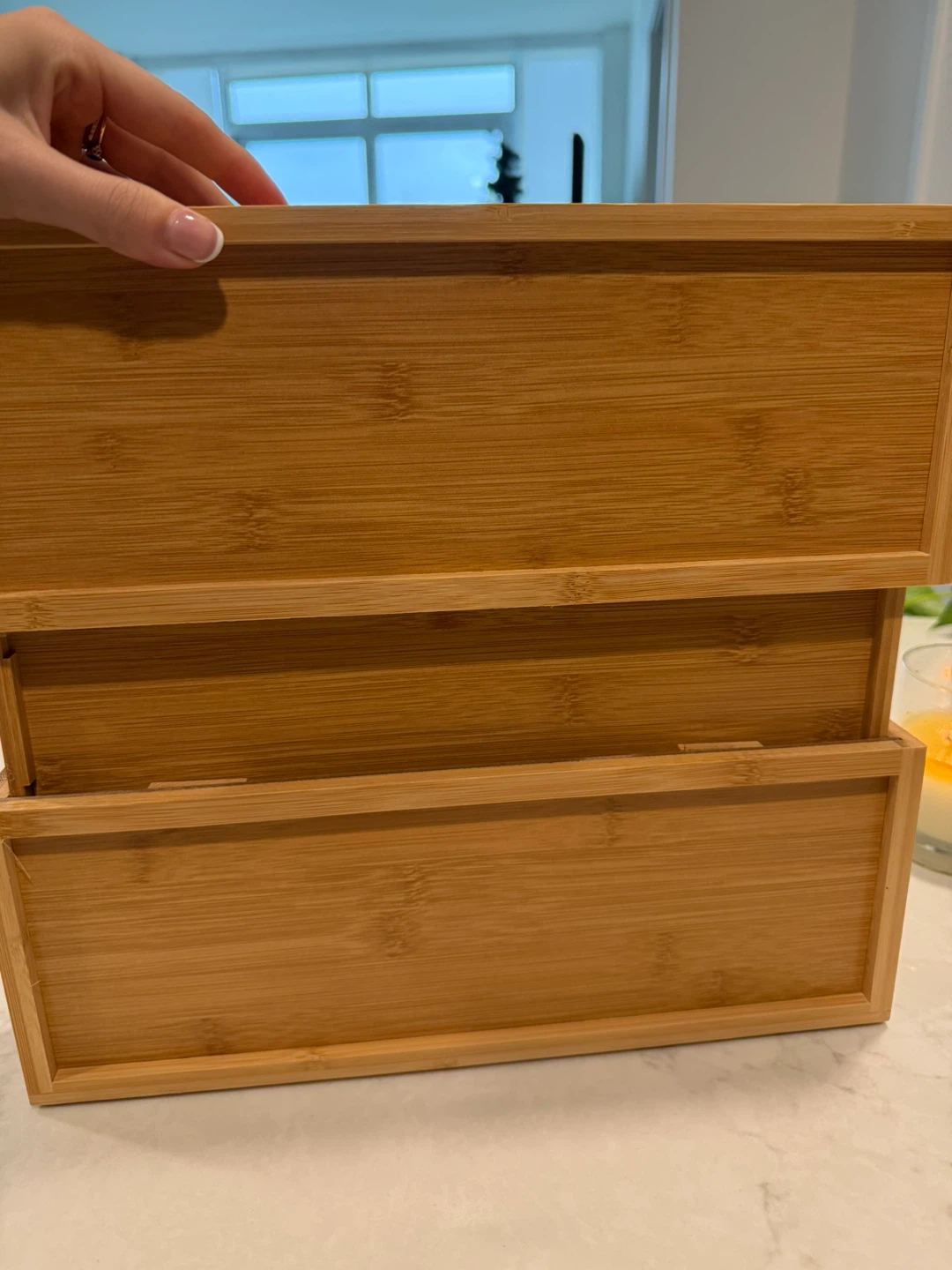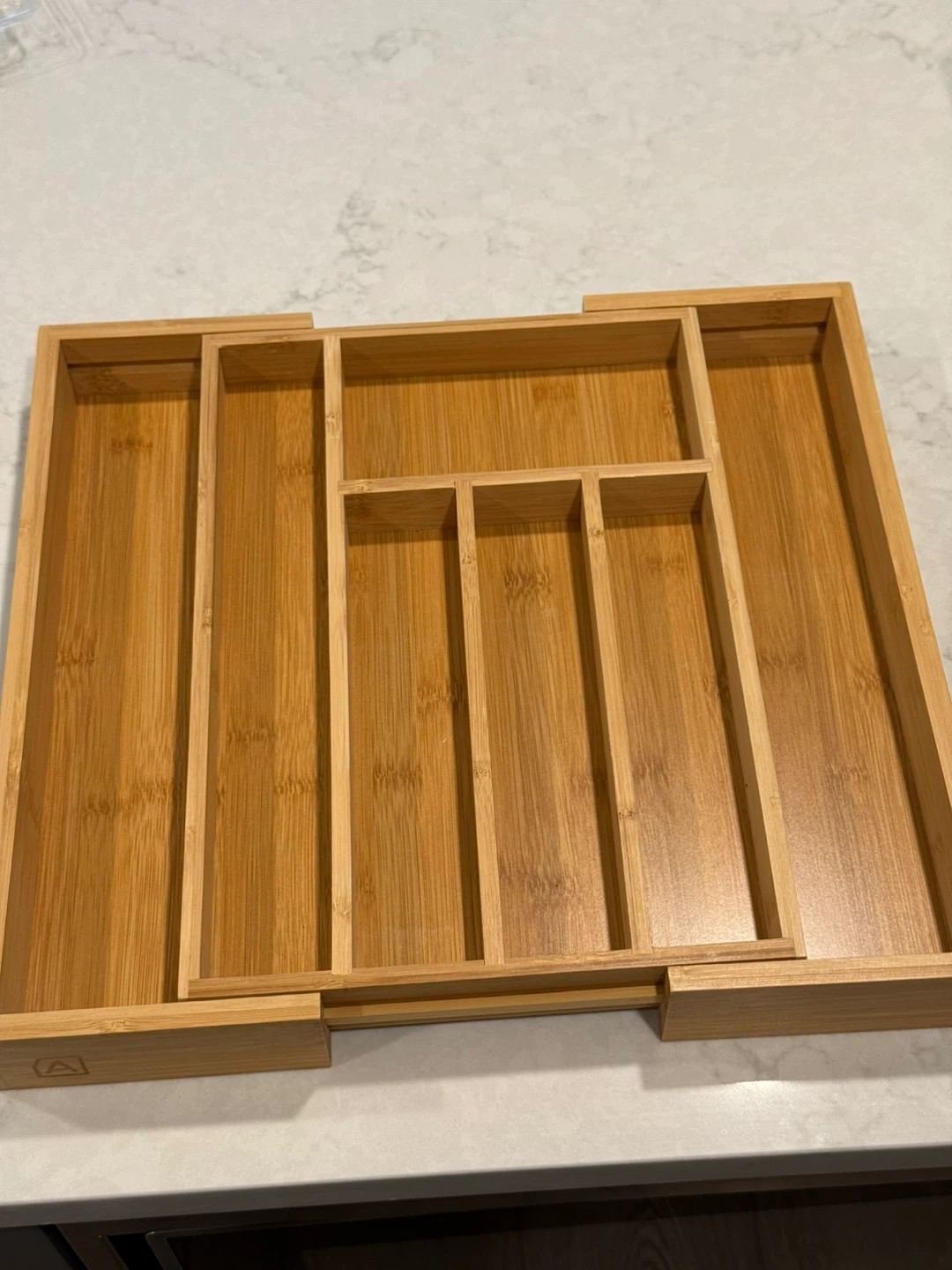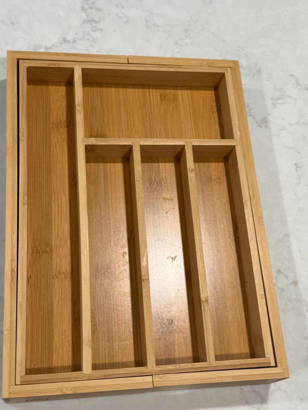 Selling a bamboo cutlery drawer organizer! It's expandable to fit your drawer perfectly. Great for keeping your kitchen organized and tidy. It's in great condition and ready to use!