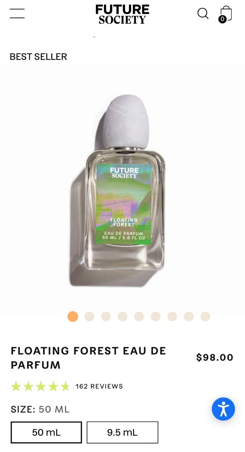 This is a Future Society Floating Forest Eau de Parfum. The fragrance is inspired by the extinct flower of the Shorea cuspidata tree, once native to Borneo.