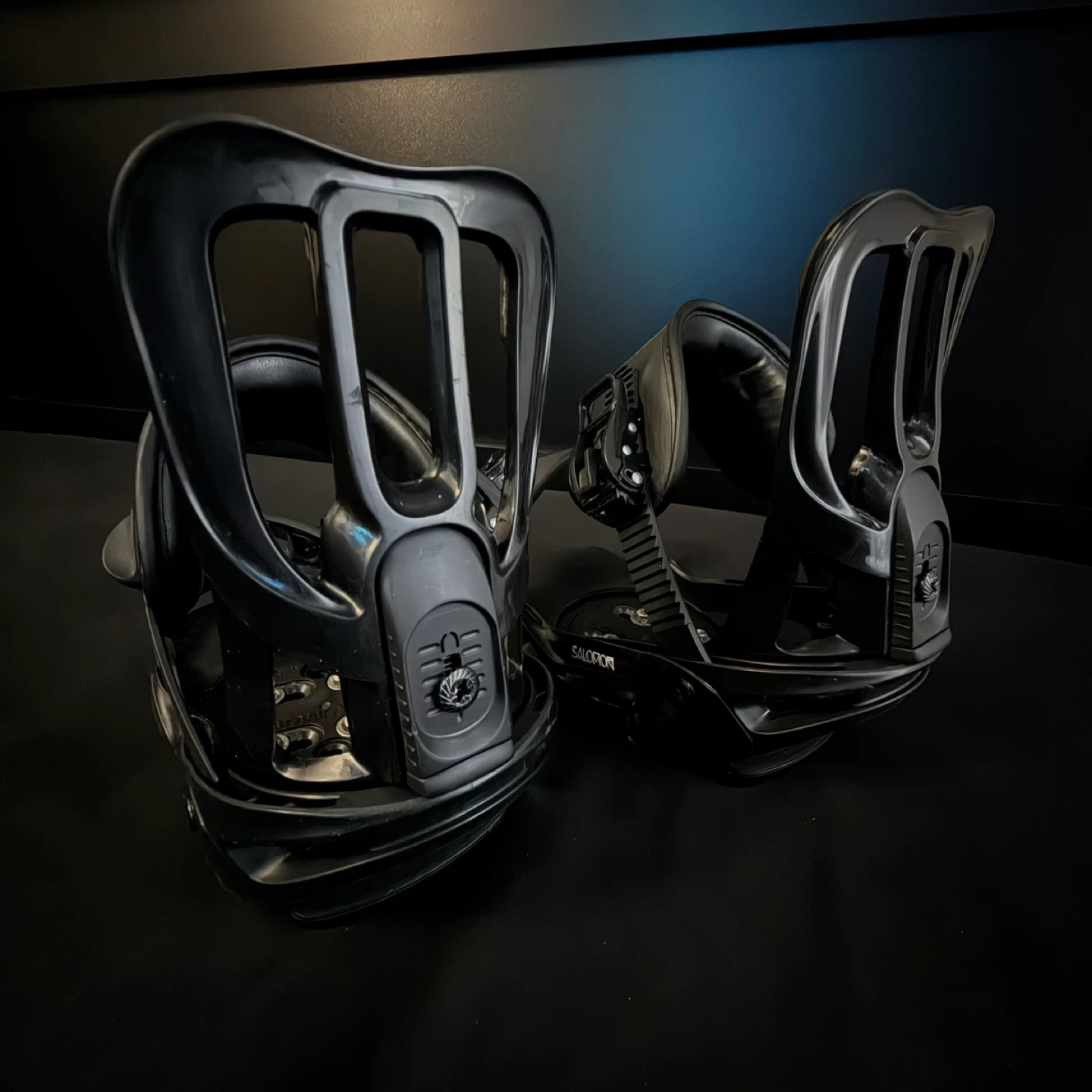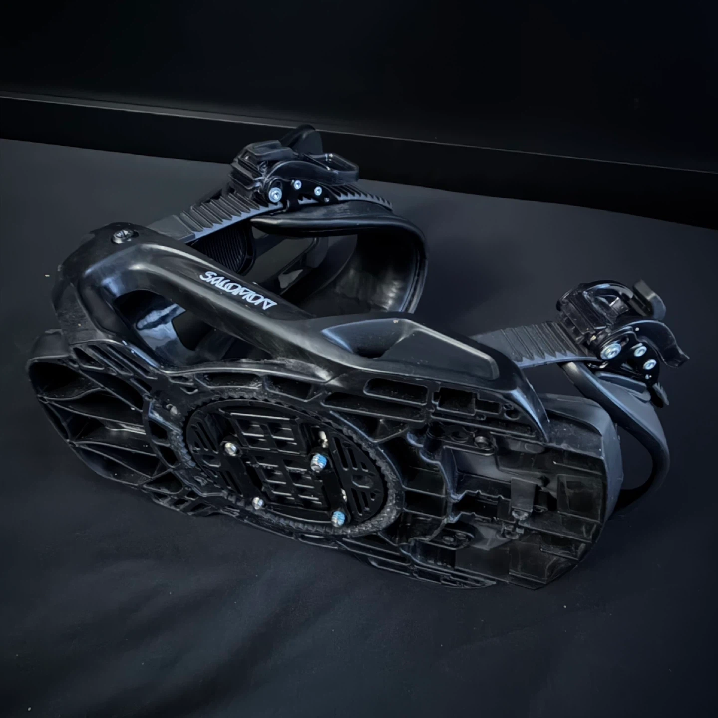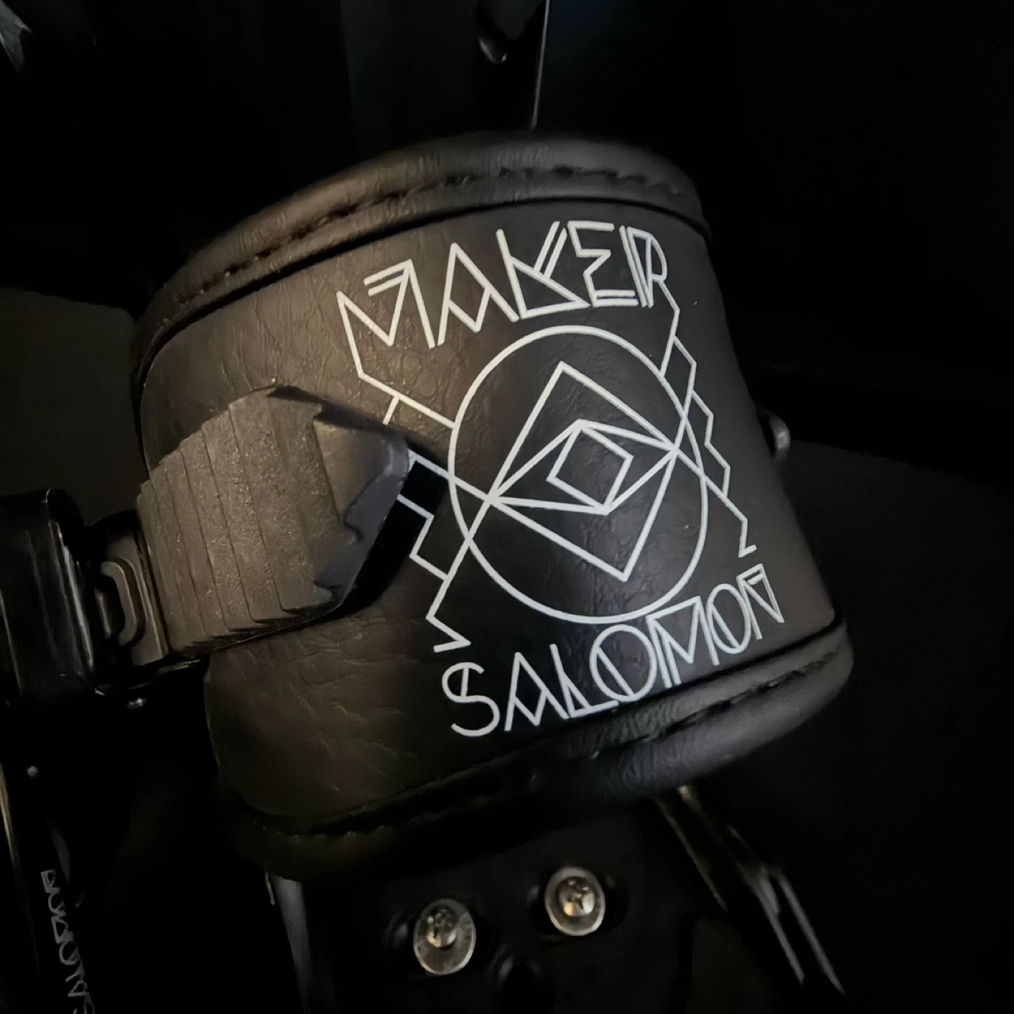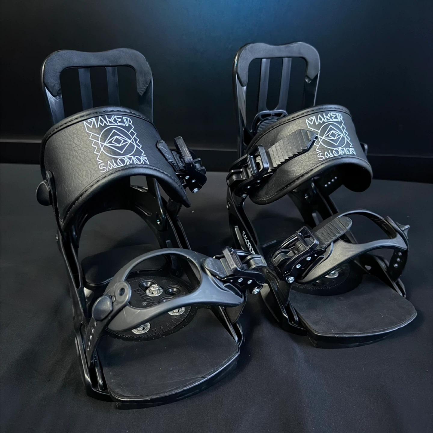 Selling a pair of Salomon Maker snowboard bindings in black. They're in great shape and ready for the slopes! The bindings feature the Salomon logo and a unique Maker design on the straps.