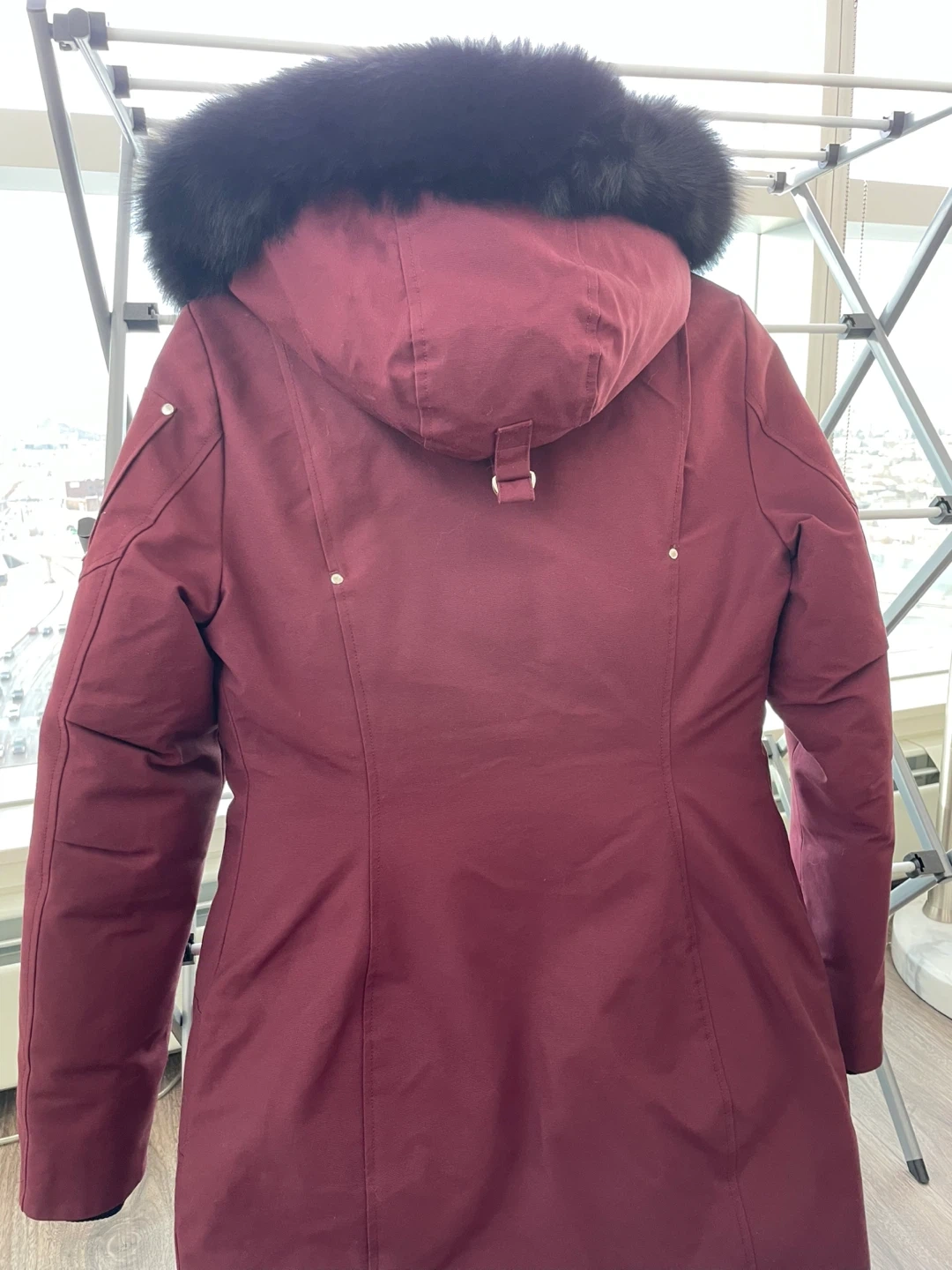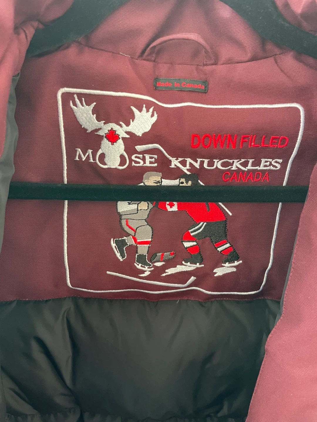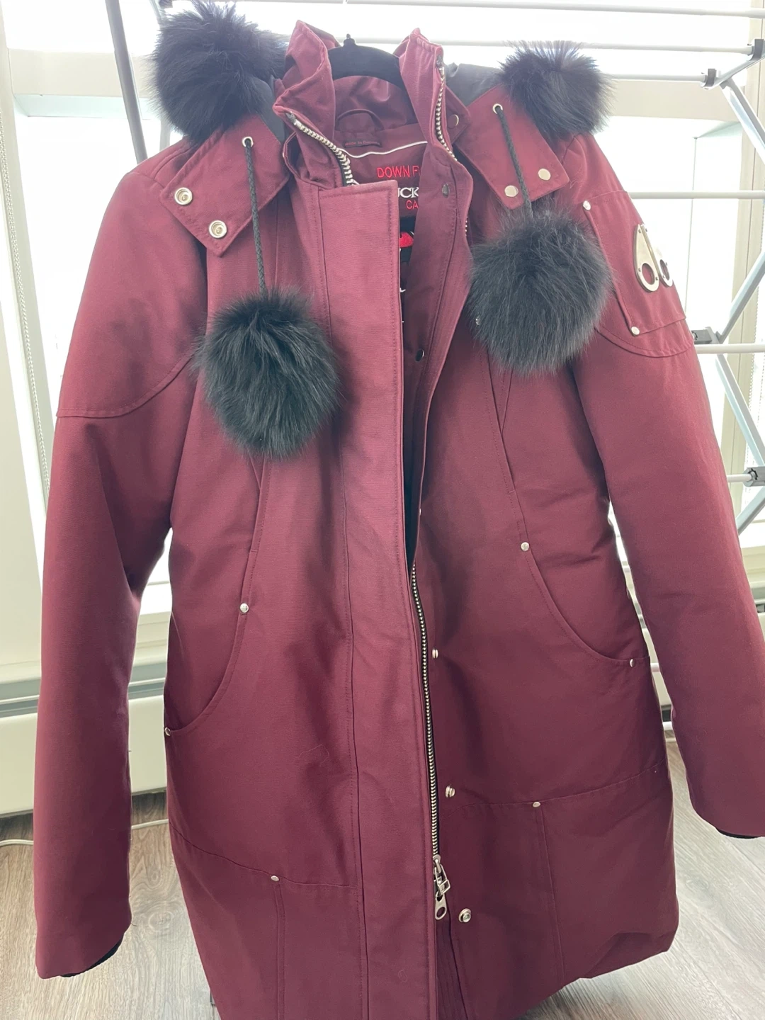 Selling a women's small Moose Knuckles down-filled Stirling Parka. It's in great condition and ready for the cold weather! The jacket is a beautiful burgundy colour and features the iconic Moose Knuckles logo. Made in Canada