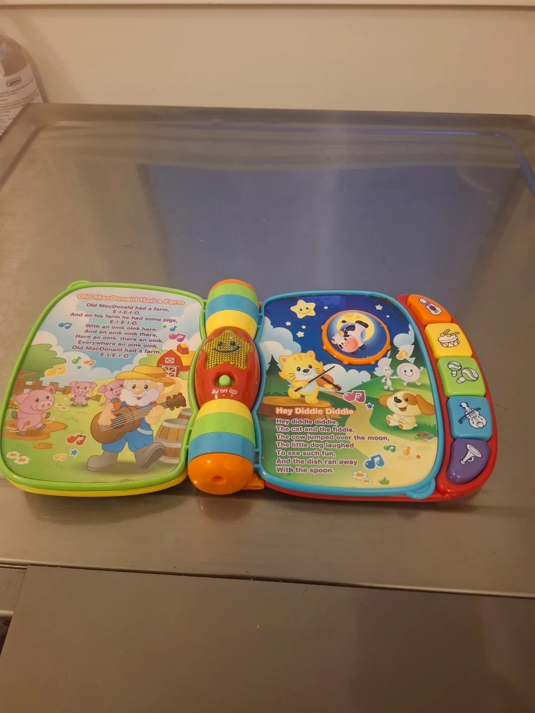 Selling a VTech Musical Rhymes Book! It's a fun interactive toy for kids. It plays different musical rhymes and has colourful illustrations to keep your little one entertained. Great for learning and playtime!